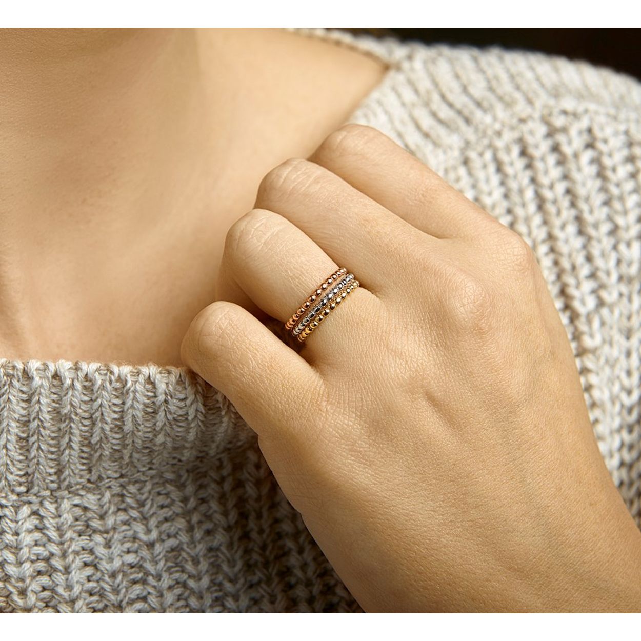 14k Rosegouden aanschuifring uitgevoerd met platte bolletjes. De ring heeft een breedte van 2mm.