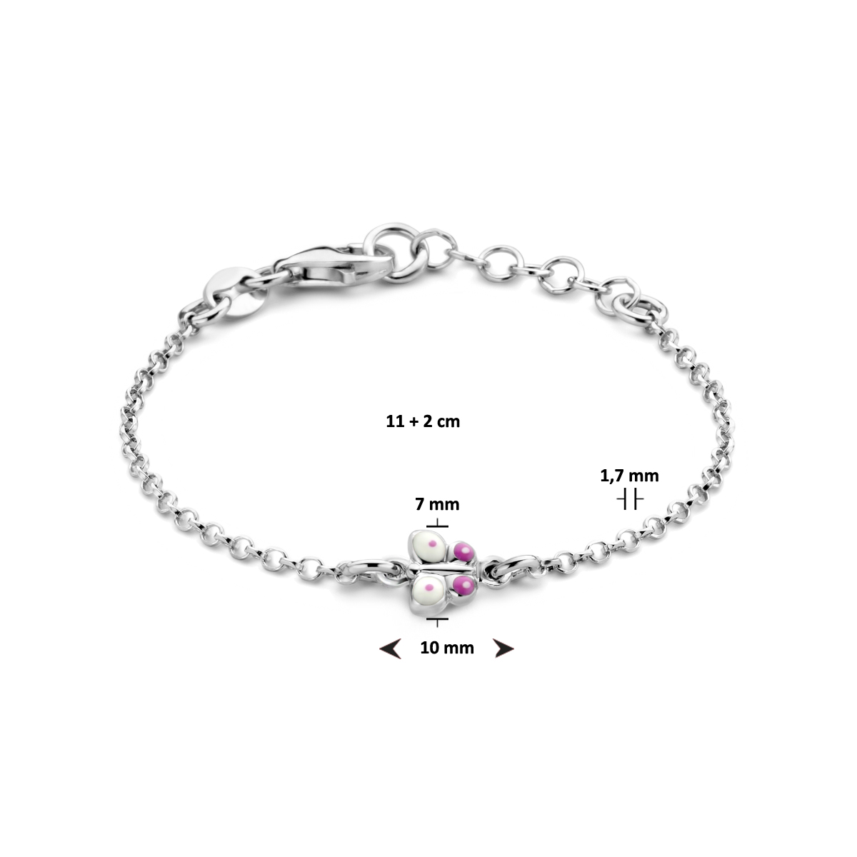 Gerhodineerd 925 zilveren armband uitgevoerd met een vlinder en een karabijn sluiting. De armband heeft een draaglengte van 11cm en een extensie van 2cm. De schakelbreedte is 1.7mm.