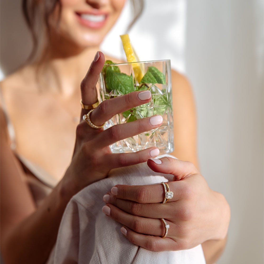 De Aurore gouden ring, Met lab-grown diamant, is vervaardigd van goud en heeft een elegante goudkleur. Met een gewicht van 2 gram en een diameter van 55, is deze ring perfect voor dagelijkse elegantie. Draag het op zichzelf voor een verfijnde look of combineer het met andere ringen voor een modieuze statement. Ideaal als cadeau of voor jezelf!