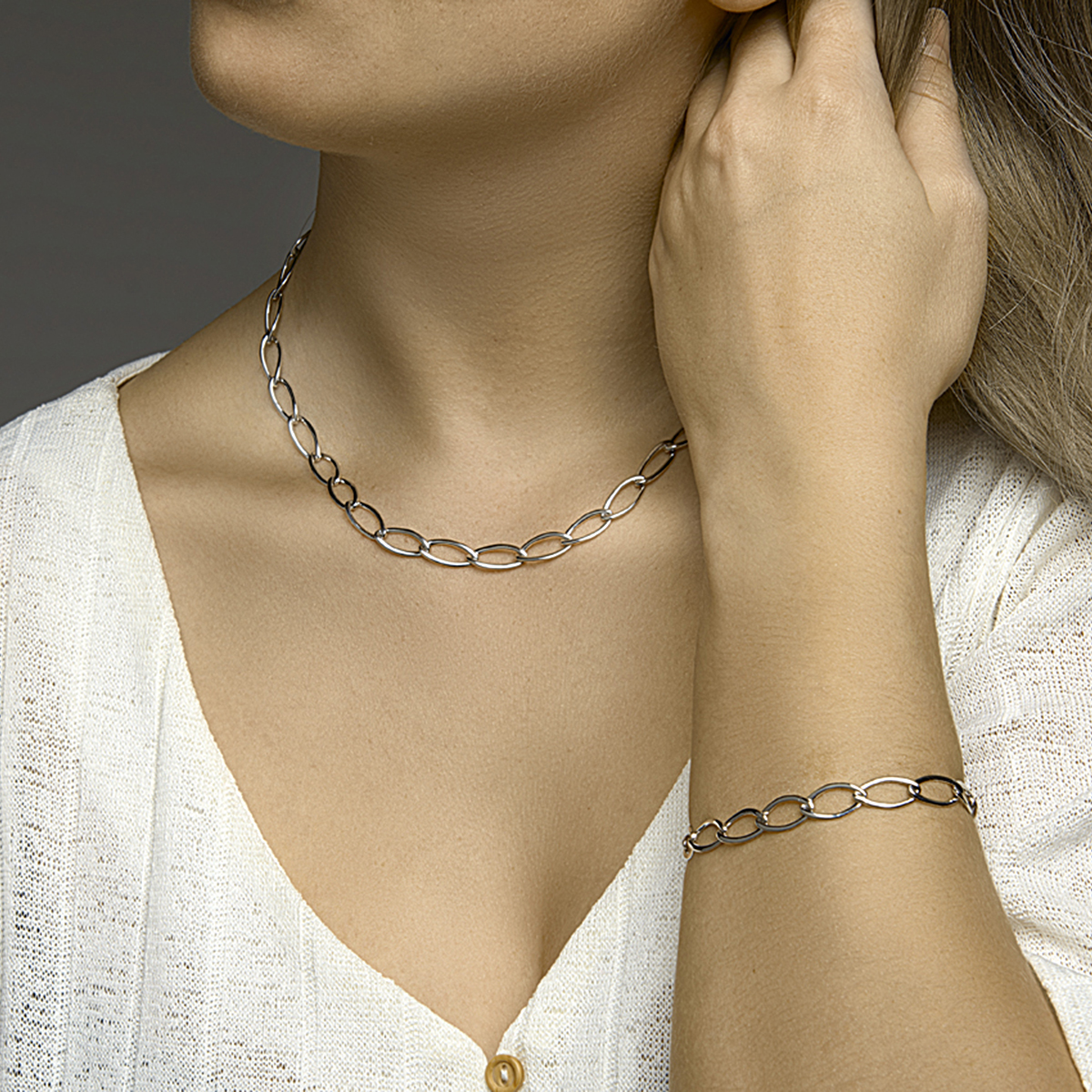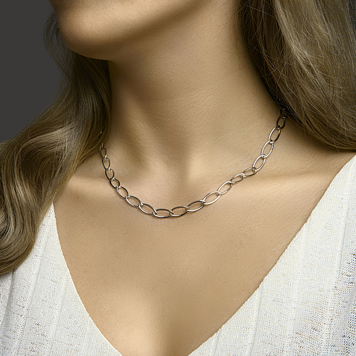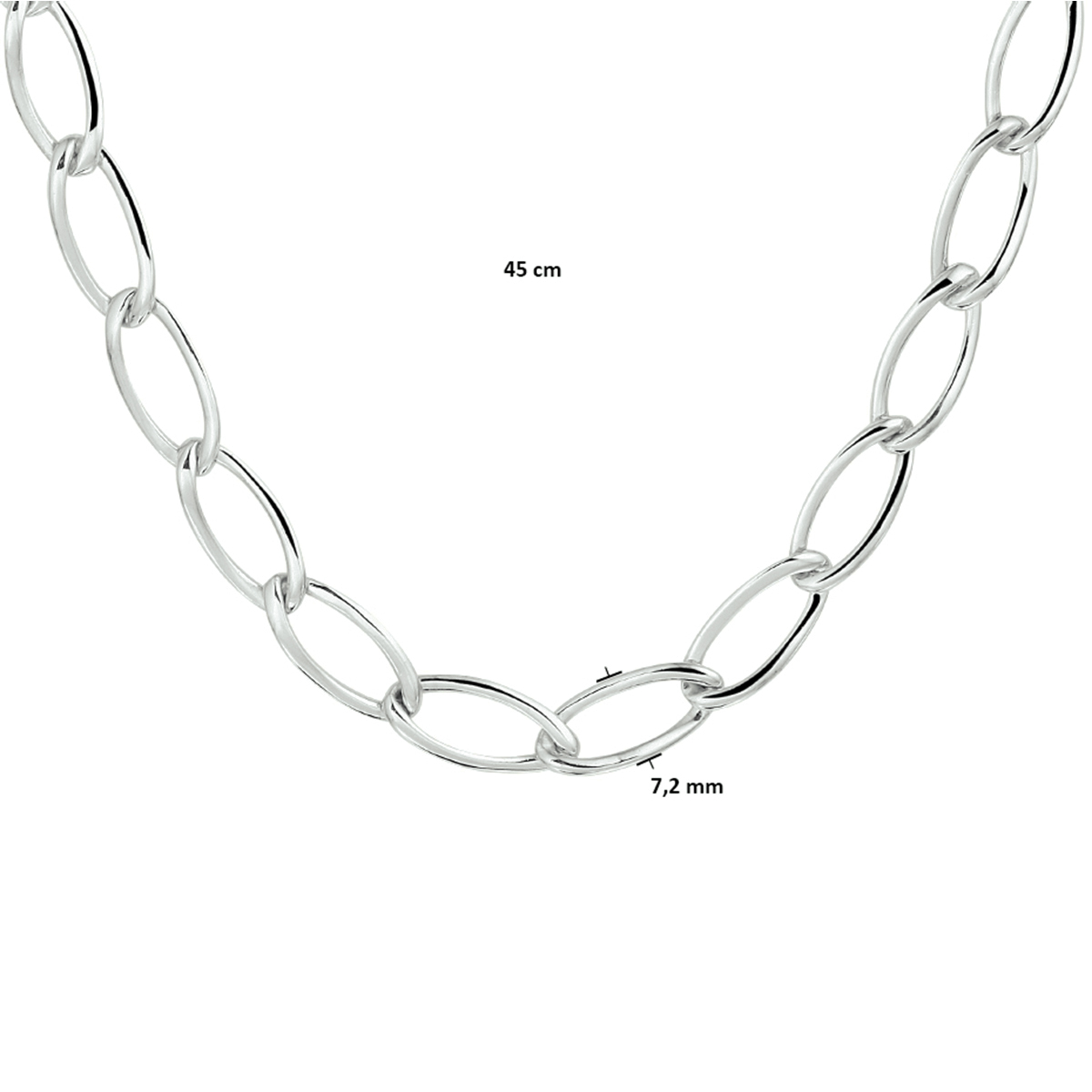 Gerhodineerd 925 zilveren collier met een schakelbreedte van 7.2mm. Het collier heeft een draaglengte van 45cm en is uitgevoerd met een stevige karabijn sluiting.