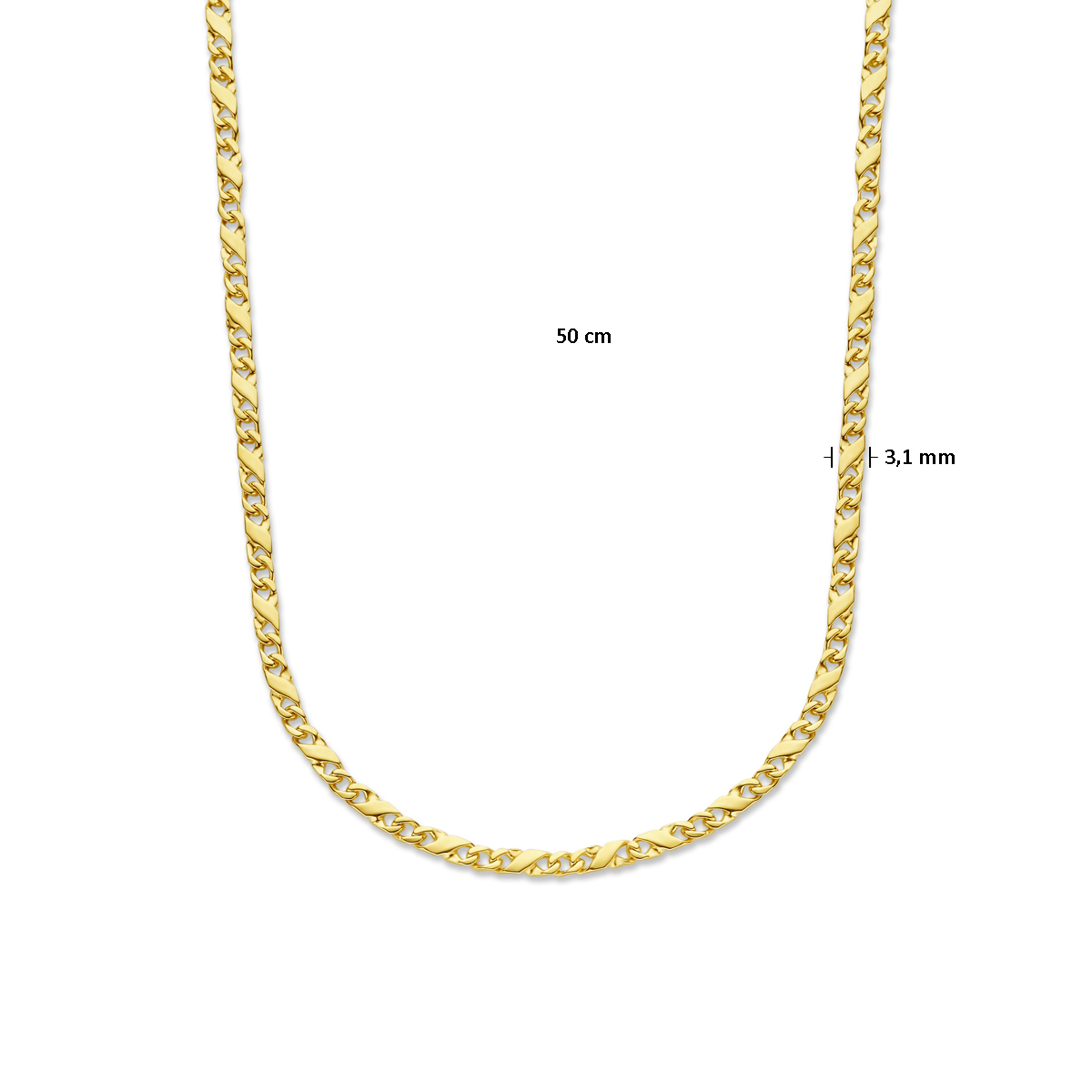 14k Geelgouden collier met een gourmette schakel van 3.1mm. Uitgevoerd met een karabijn sluiting.