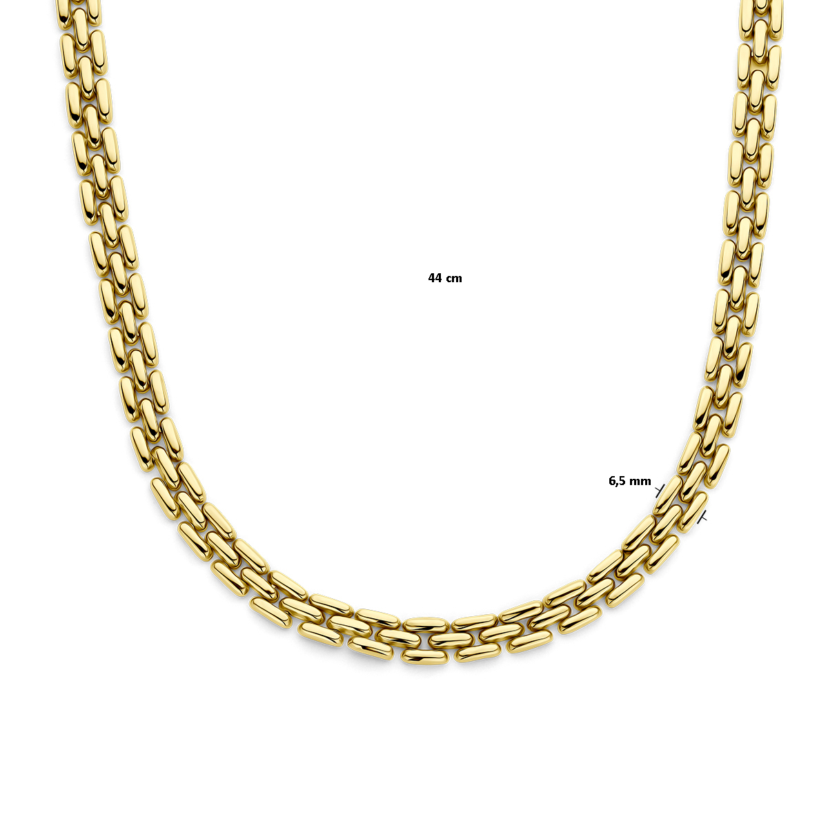 14k Geelgouden panter collier met een draaglengte van 44cm. De schakelbreedte is 6.5mm.