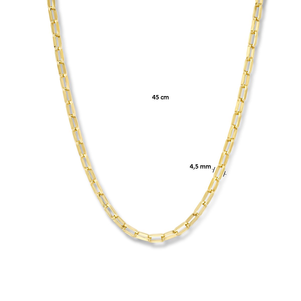 14k Geelgoud met 925 zilveren kern collier met een paperclip schakel. Het collier heeft een draaglengte van 45cm.