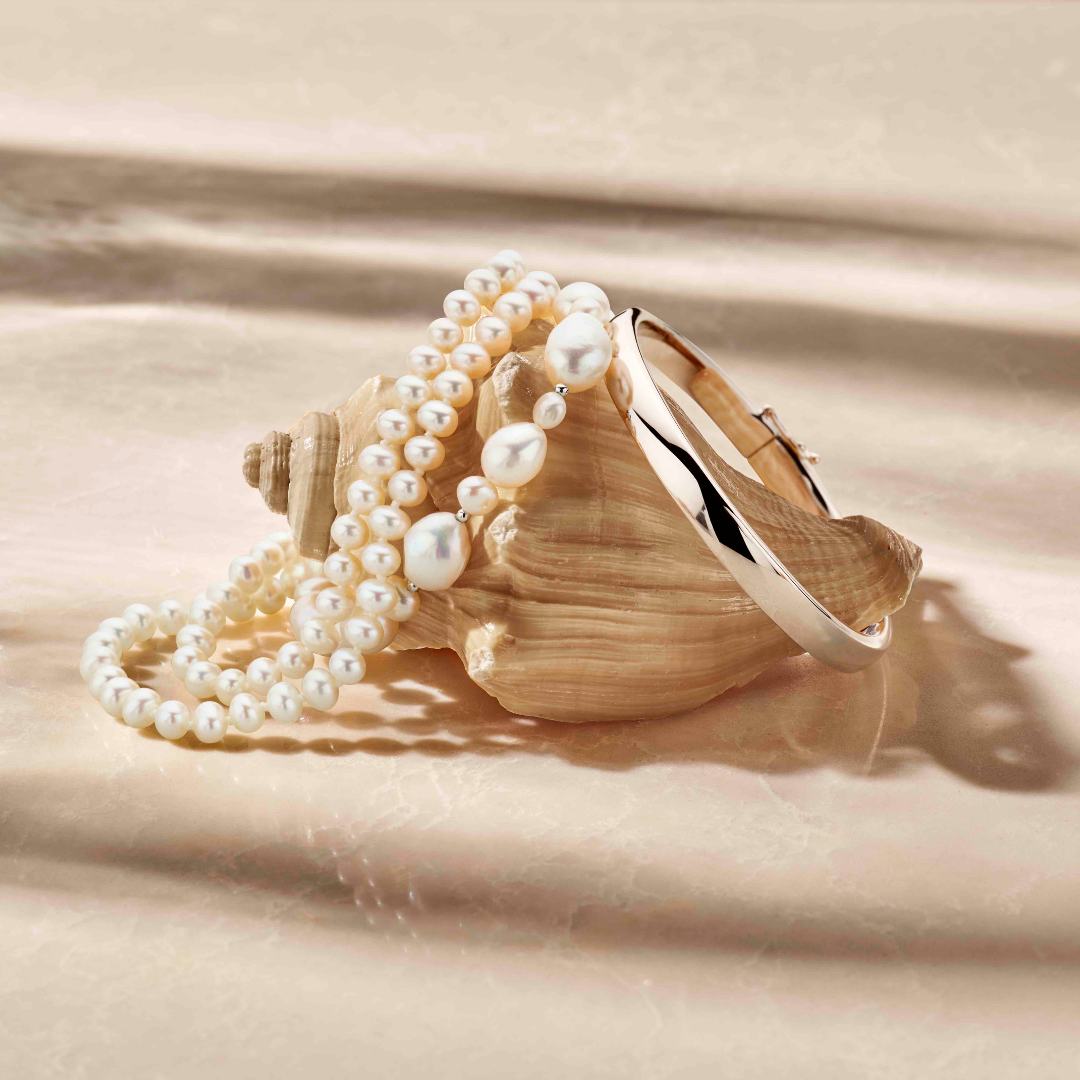 Gerhodineerd zilveren collier met zoetwaterparels op lengtemaat 45 cm. De breedte van de parels zijn 6 mm.