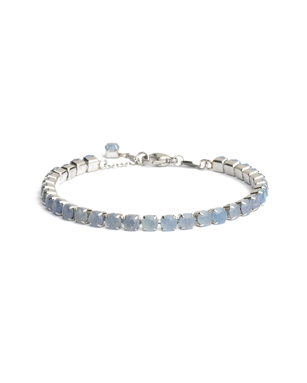 De Lena Blue is een prachtige tennisarmband afgewerkt met tientallen 2mm blauwe aventurijn natuurstenen. Het maken van deze armband neemt veel tijd in beslag omdat elke steen individueel aangepast moet worden om deze fijne armband te laten passen.