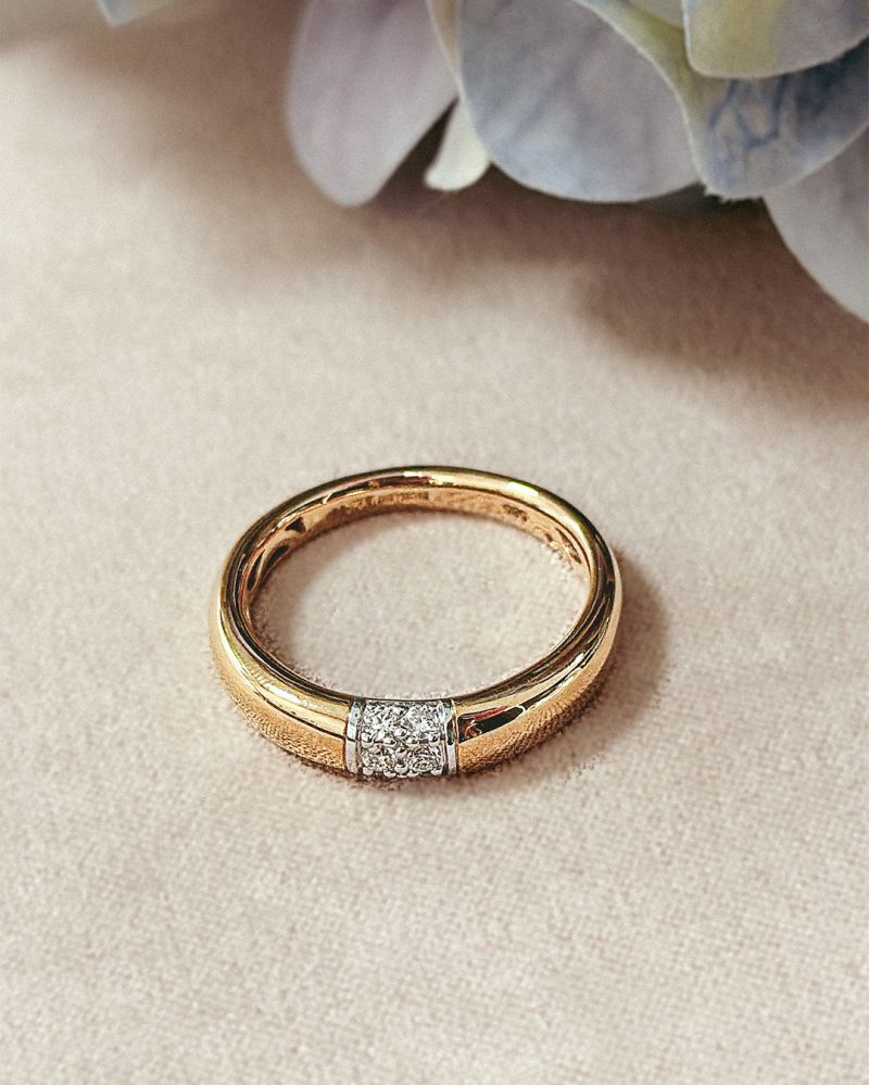 Deze prachtige gouden ring is gemaakt van 14-karaats goud en heeft een breedte van 4,5 mm. De ring is versierd met een schitterende witte diamant van SI1-zuiverheid. Draag hem als een stijlvolle statement piece bij zowel formele als alledaagse gelegenheden om je look te verfraaien. Glanzende afwerking voor extra elegantie.