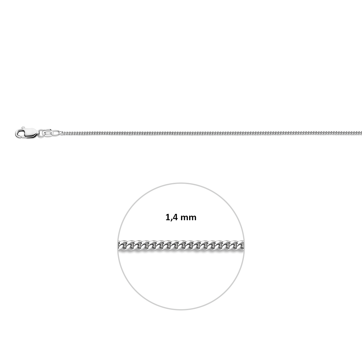 Exclusief zilveren collier, is gemaakt van 925 sterling zilver met een rhodium afwerking. Dit elegante gourmetketting heeft een glanzende zilverkleur en een breedte van 1,4 mm. Met een lengte van 50 cm en een stevige karabijnsluiting, is het perfect om alleen te dragen of te combineren met andere sieraden voor een verfijnde look.