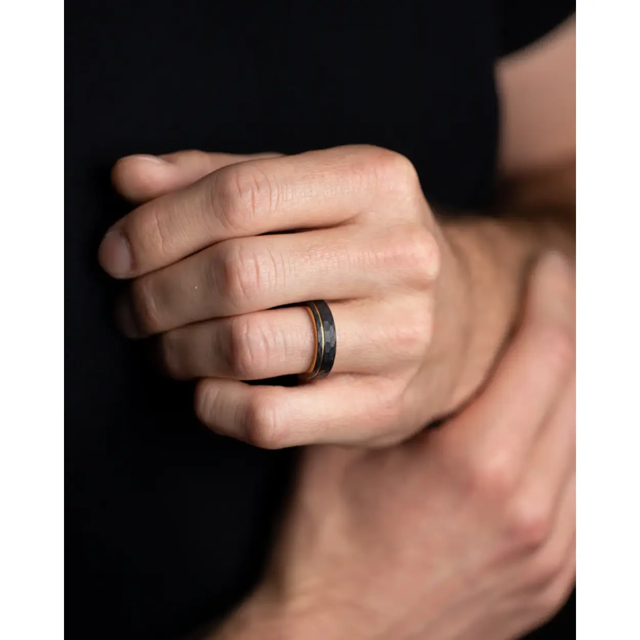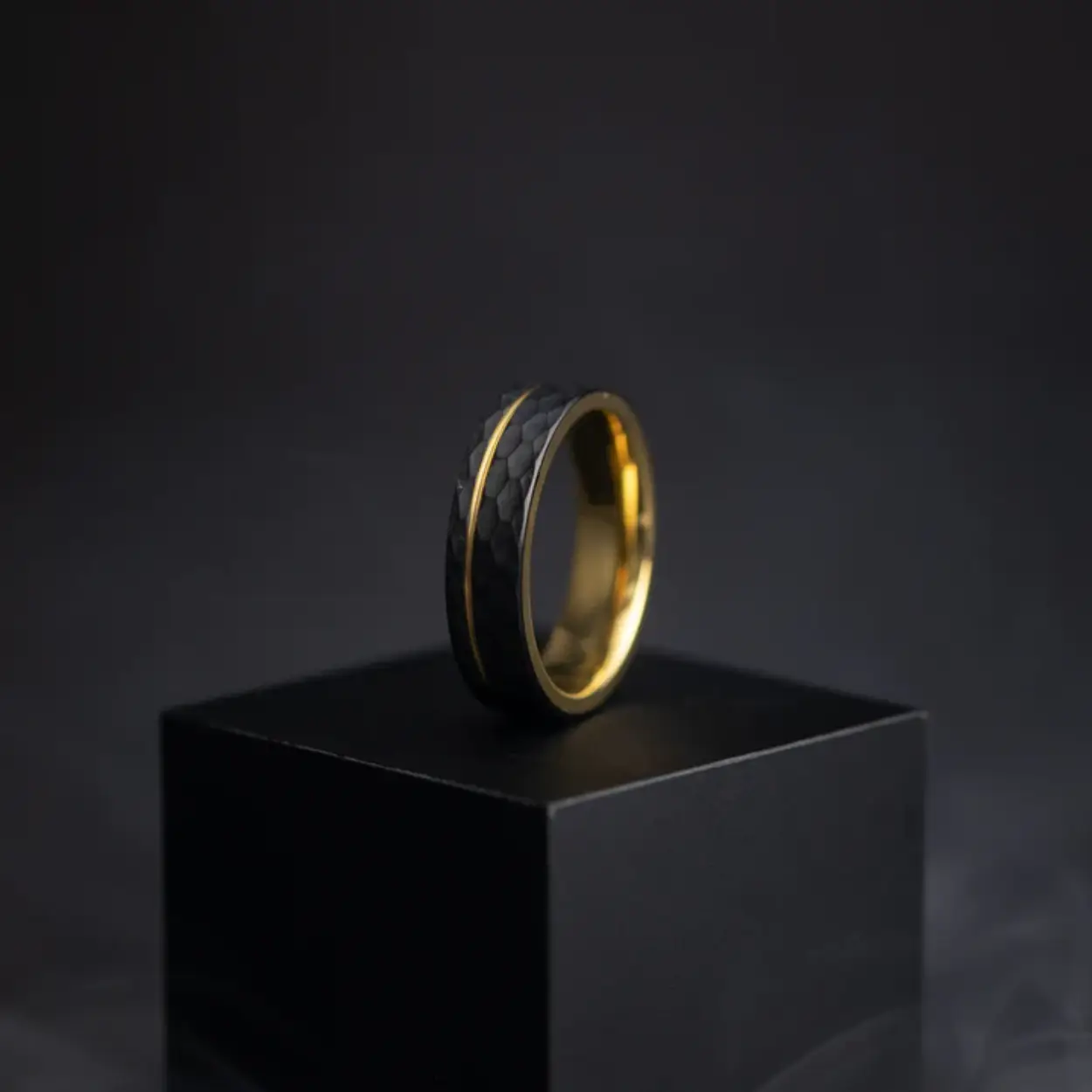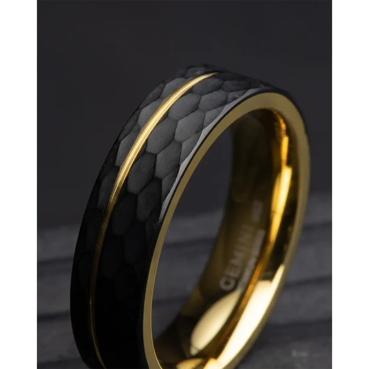 De Alter Gold ring is volledig gemaakt uit titanium. Hij heeft een diameter van 6mm en een gefacetteerde afwerking aan de buitenkant.