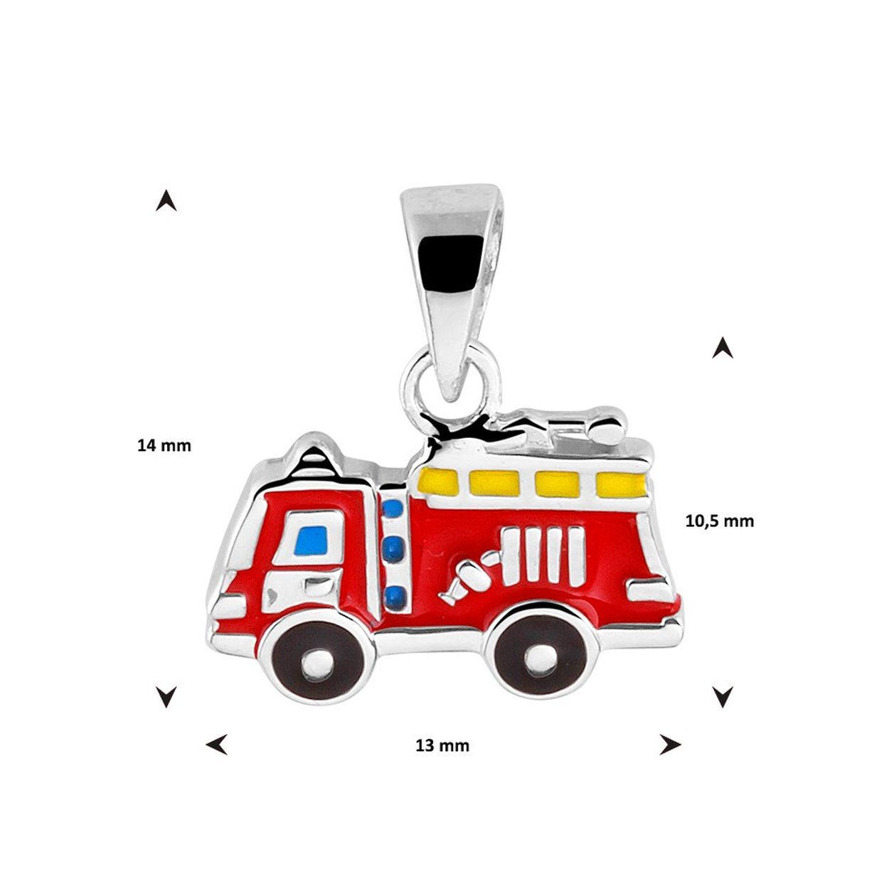 Doelgroep: kinderen, zilveren hanger met een rode brandweerauto.