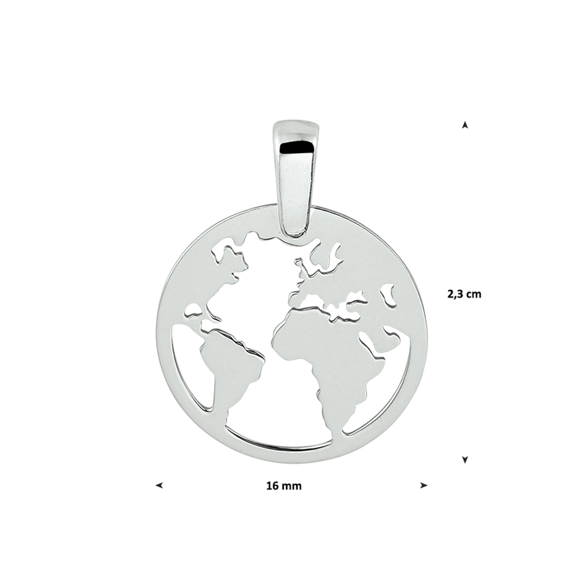 Gerhodineerd zilveren hanger in de vorm van een wereldbol. De hanger heeft een totaalhoogte van 23mm en een diameter van 16mm. Combineer deze hanger met een bijpassend collier uit onze collectie of vanuit je eigen stash. Info: Gerhodineerd zilver is door de rhodiumlaag beter bestand tegen verkleuren en krassen.