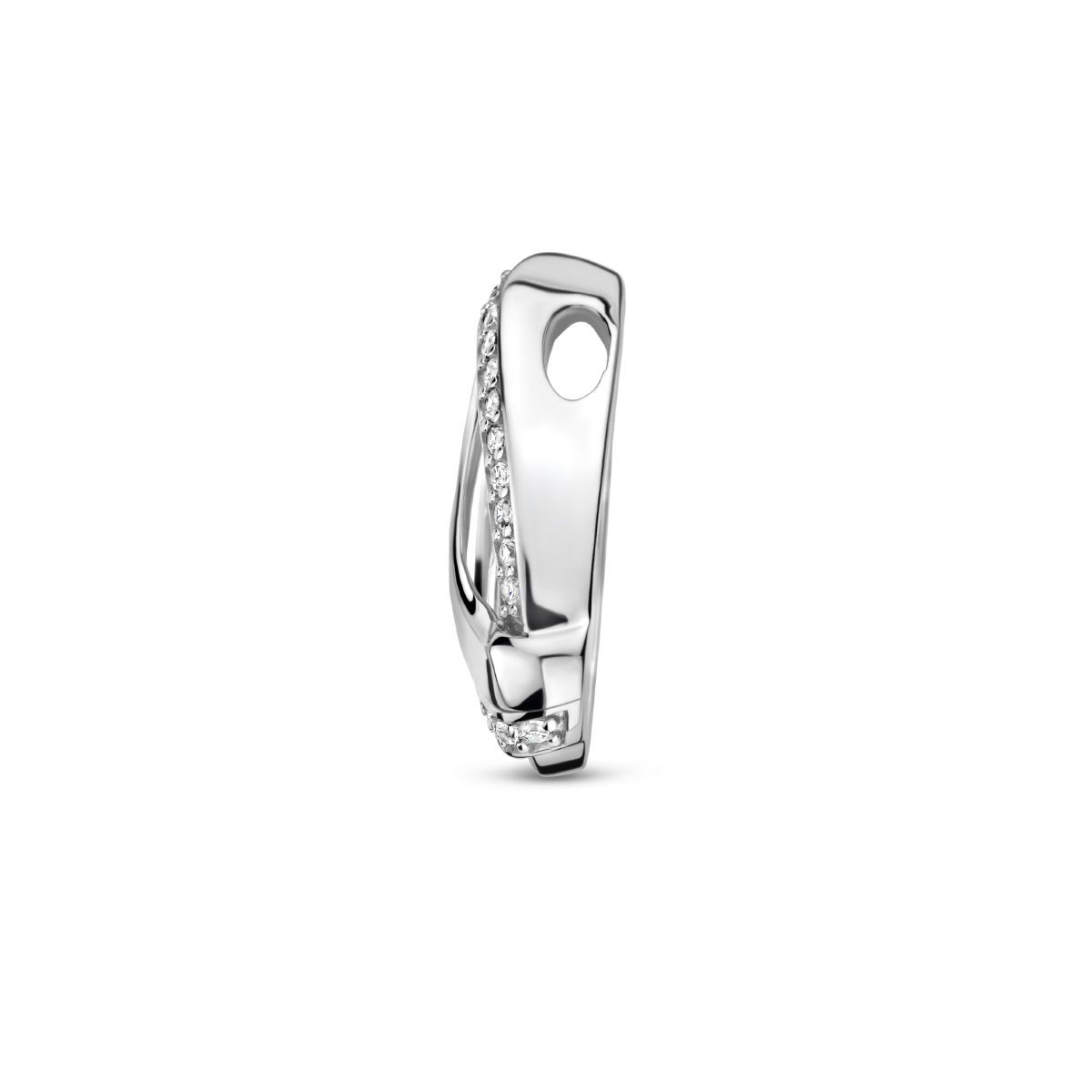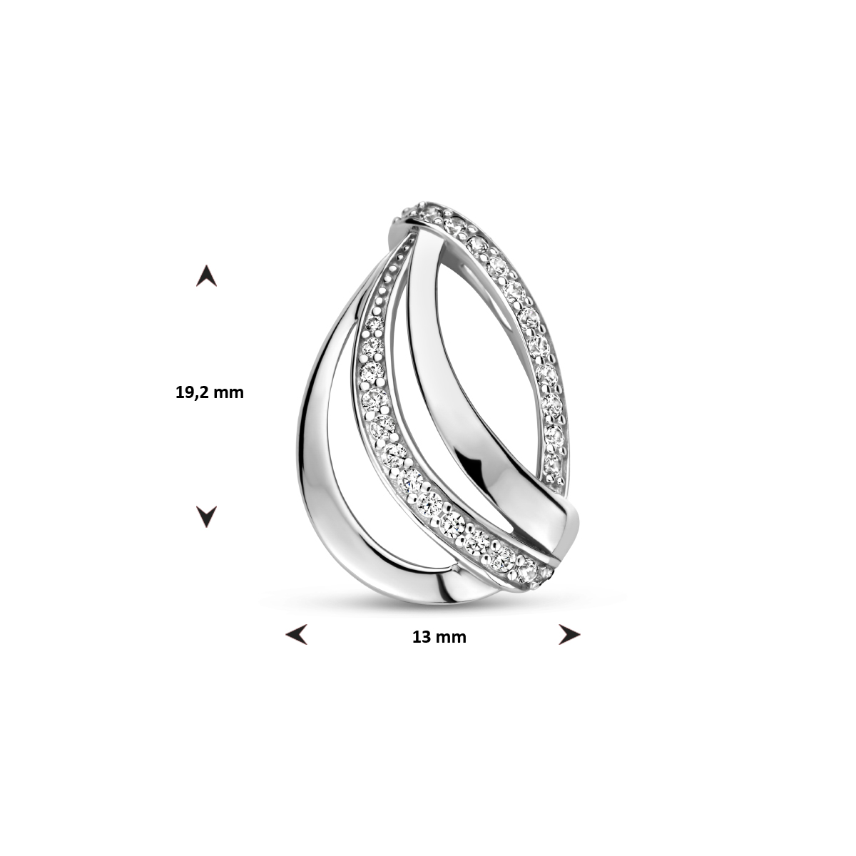 Gerhodineerd 925 zilveren hanger uitgevoerd met een zirkonia. De hanger heeft een afmeting van 19.2x13mm.