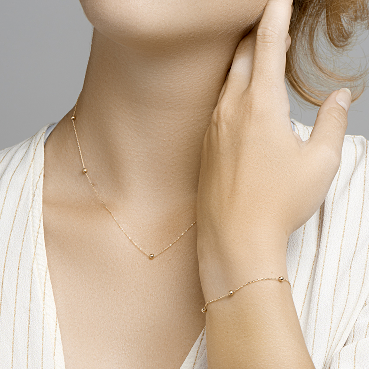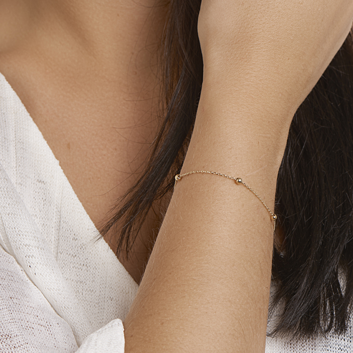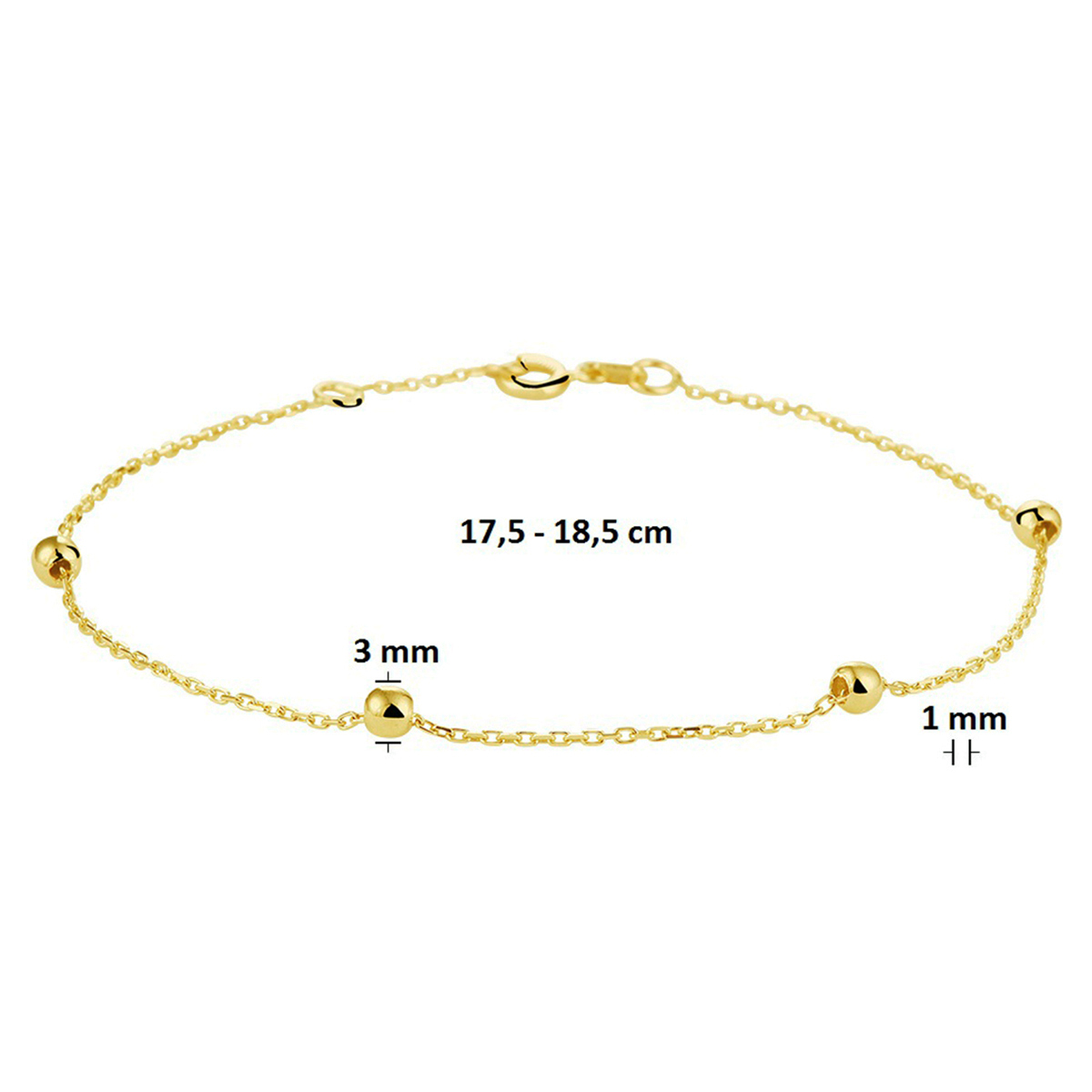 Geelgouden 1mm anker armband met draaglengtes van 17,5 cm 18,5 cm uitgevoerd met 4 bolletjes van 3mm. De armband is te combineren met bijpassende sieraden uit onze collectie.