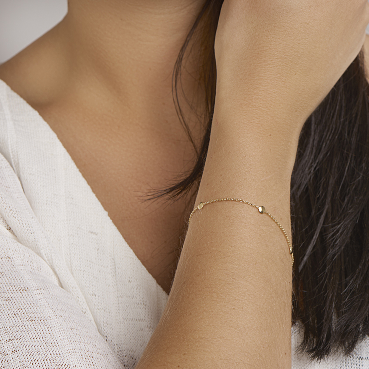Geelgouden 1.2mm breed anker armband met een lengte van 17cm en een extensie van 2cm uitgevoerd met rondjes van 4mm.