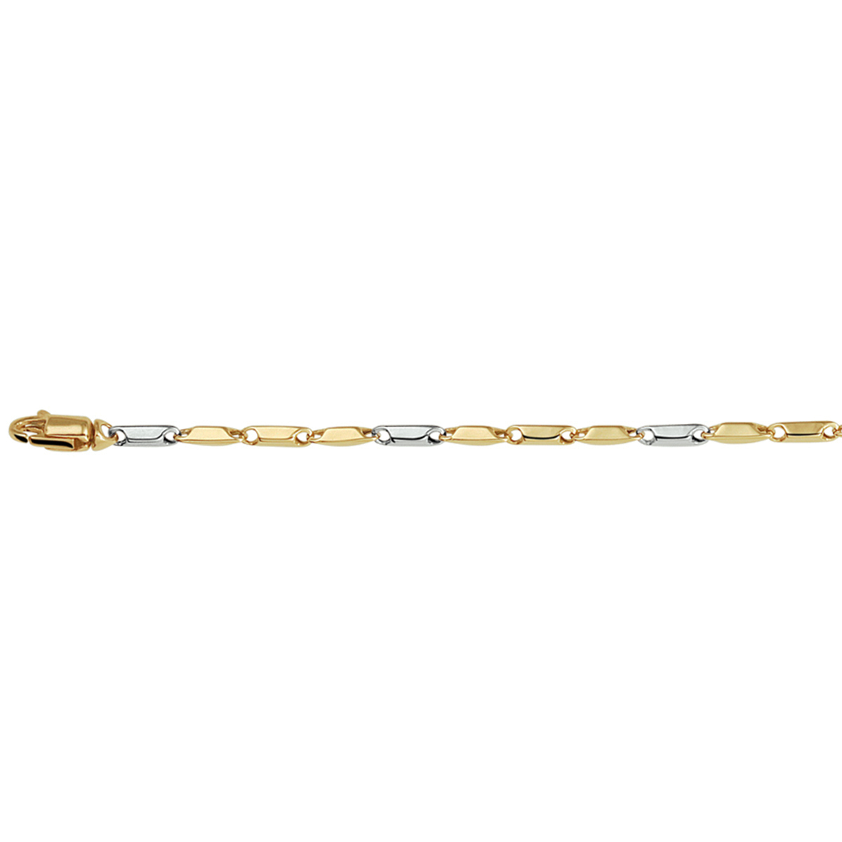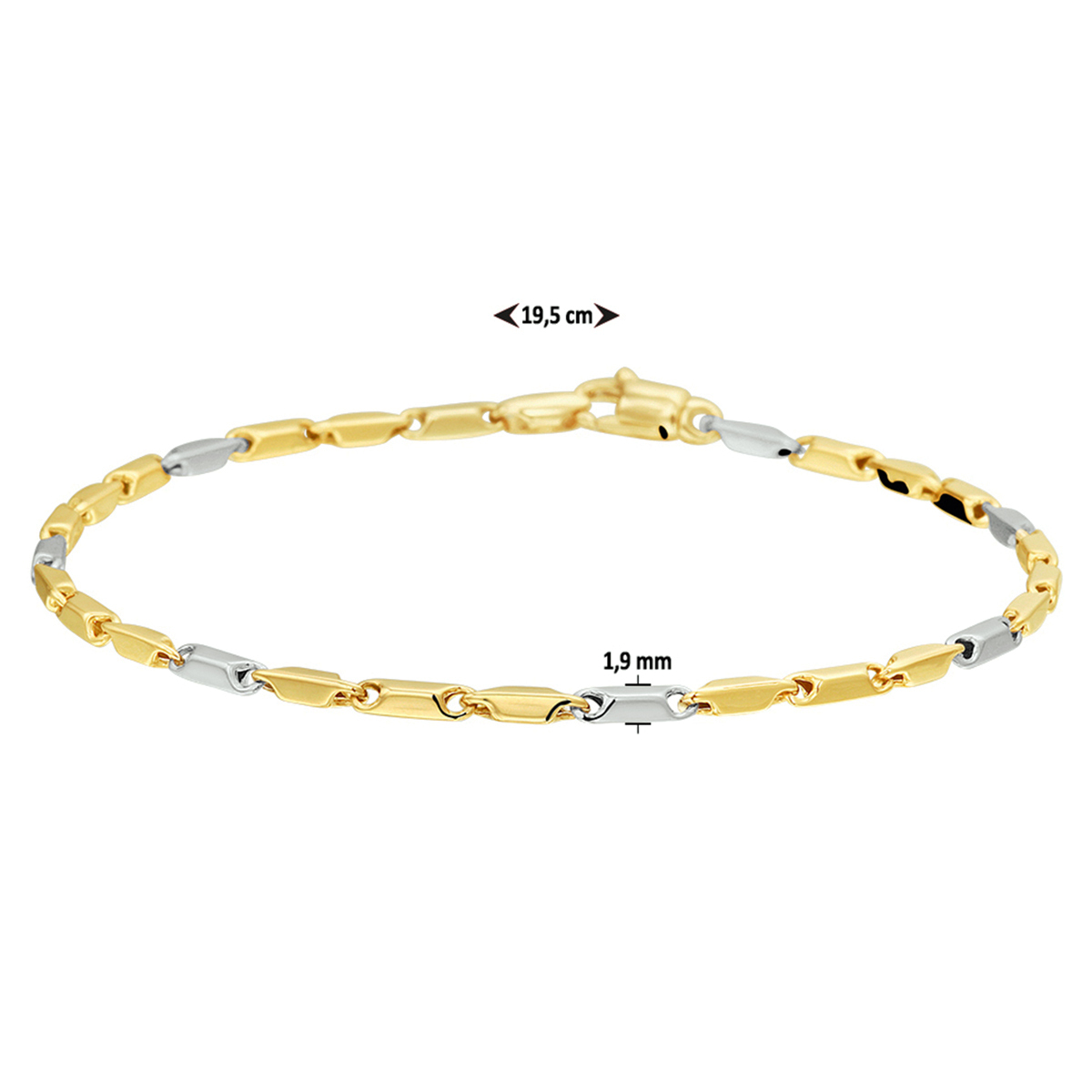 Bicolor wit- en geelgouden armband met een lengte van 19.5cm en breedte van 1.9mm. De armband is te combineren met een bijpassend collier uit onze collectie.