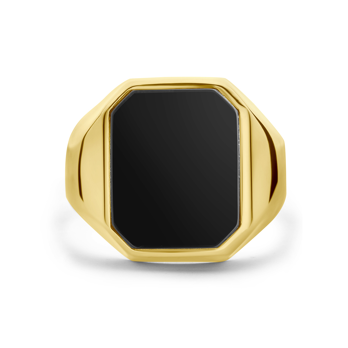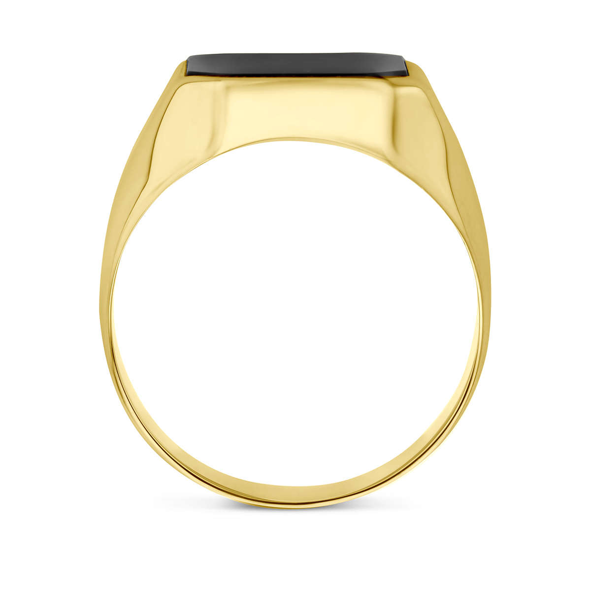 Deze gouden ring met modelnummer is een stoere accessoire voor elke gelegenheid. Gemaakt van goud, is deze glanzende ring 17mm hoog en 14mm breed en heeft een doorsnede van 69. Verrijkt met een zwarte onyx steen, is het een stijlvolle aanvulling voor zowel formele als casual outfits. Perfect als statement stuk of als verfijnde aanvulling.
