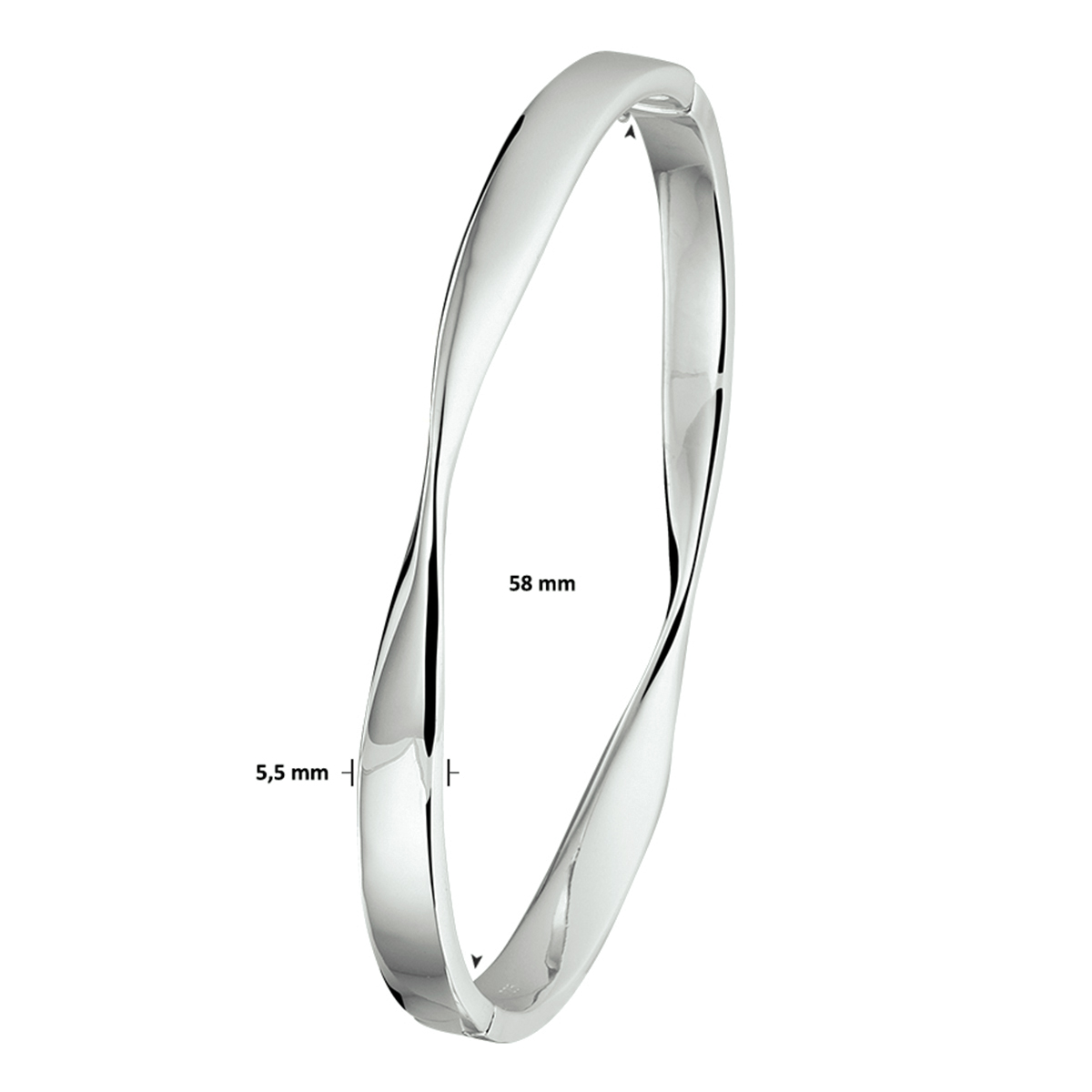 De Huismerk zilveren bangle (modelnummer 1329477) is een elegante slavenarmband, gemaakt van rodiumgeplateerd materiaal. Deze glanzende, zilverkleurige armband is 5,5 mm breed en heeft een diameter van 58 mm. Draag het als een stijlvol statement stuk, los of in combinatie met andere sieraden voor een verfijnde look. Perfect voor elke gelegenheid!