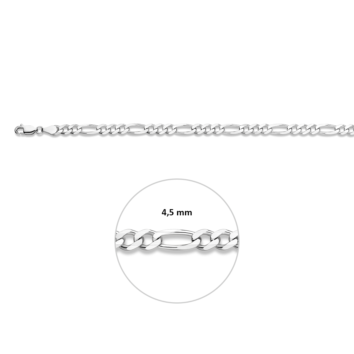 Zilveren lengte artikel met figaro schakel. De schakelbreedte is 4.5mm.
