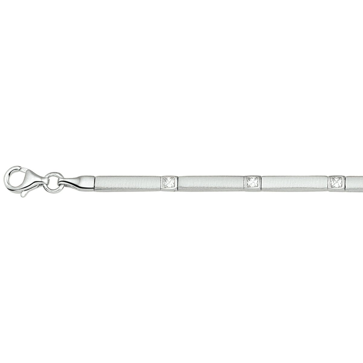 Gerhodineerd zilveren 3.3mm breed collier met een lengte van 43cm en uitgevoerd met zirkonia in een zetkast. Het collier is te combineren met bijpassende sieraden uit onze collectie.