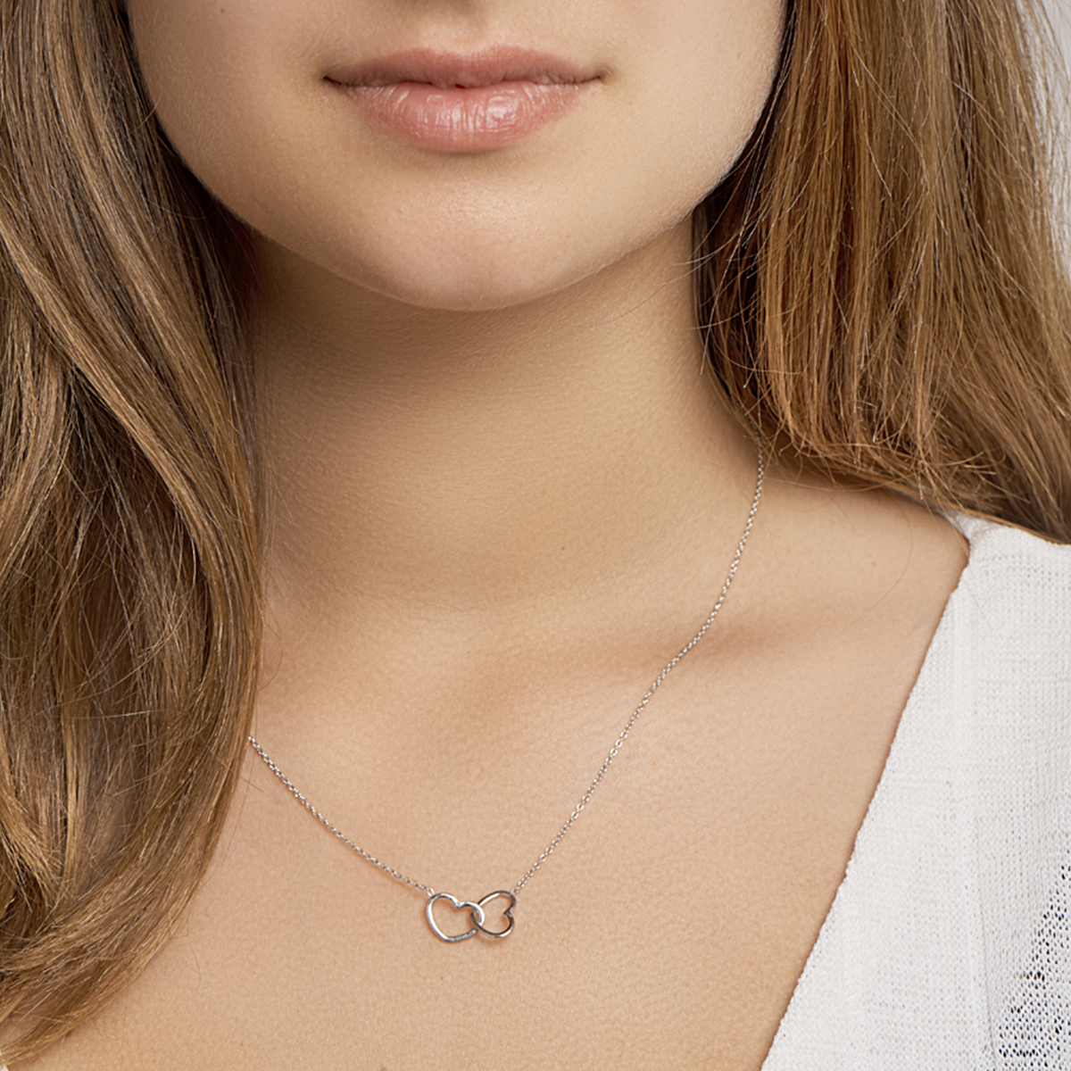 Gerhodineerd zilveren 1.2mm anker collier met een lengte van 40cm en een extensie van 5cm uitgevoerd met 2 harten van 9x12mm. Het collier is te combineren met bijpassende sieraden uit onze collectie.