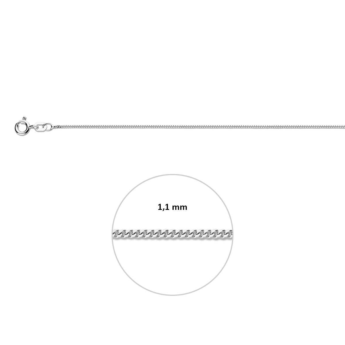 Gerhodineerd 925 zilveren gourmet lengteartikel met een schakelbreedte van 1.1mm.