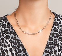 Gerhodineerd zilveren collier met een paperclipschakel op lengtemaat 45 cm.