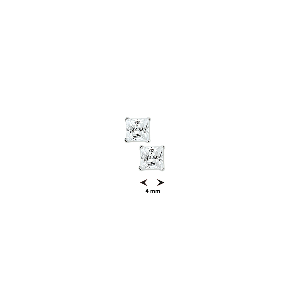 Zilveren oorknoppen met princess geslepen zirkonia met een afmeting van 4mm.