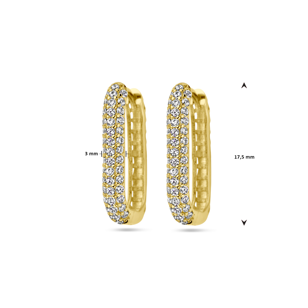 Deze prachtige geelgouden oorringen van ons huismerk zijn voorzien van een trendy paperclip design en sprankelende zirkonia pavé stenen. De perfecte accessoire voor een elegante en stijlvolle look. Draag deze oorringen bij zowel casual als formele outfits voor een subtiele touch van glamour. Een absolute must-have voor jouw sieradencollectie. Bestel de Geelgouden Oorringen vandaag nog en straal!