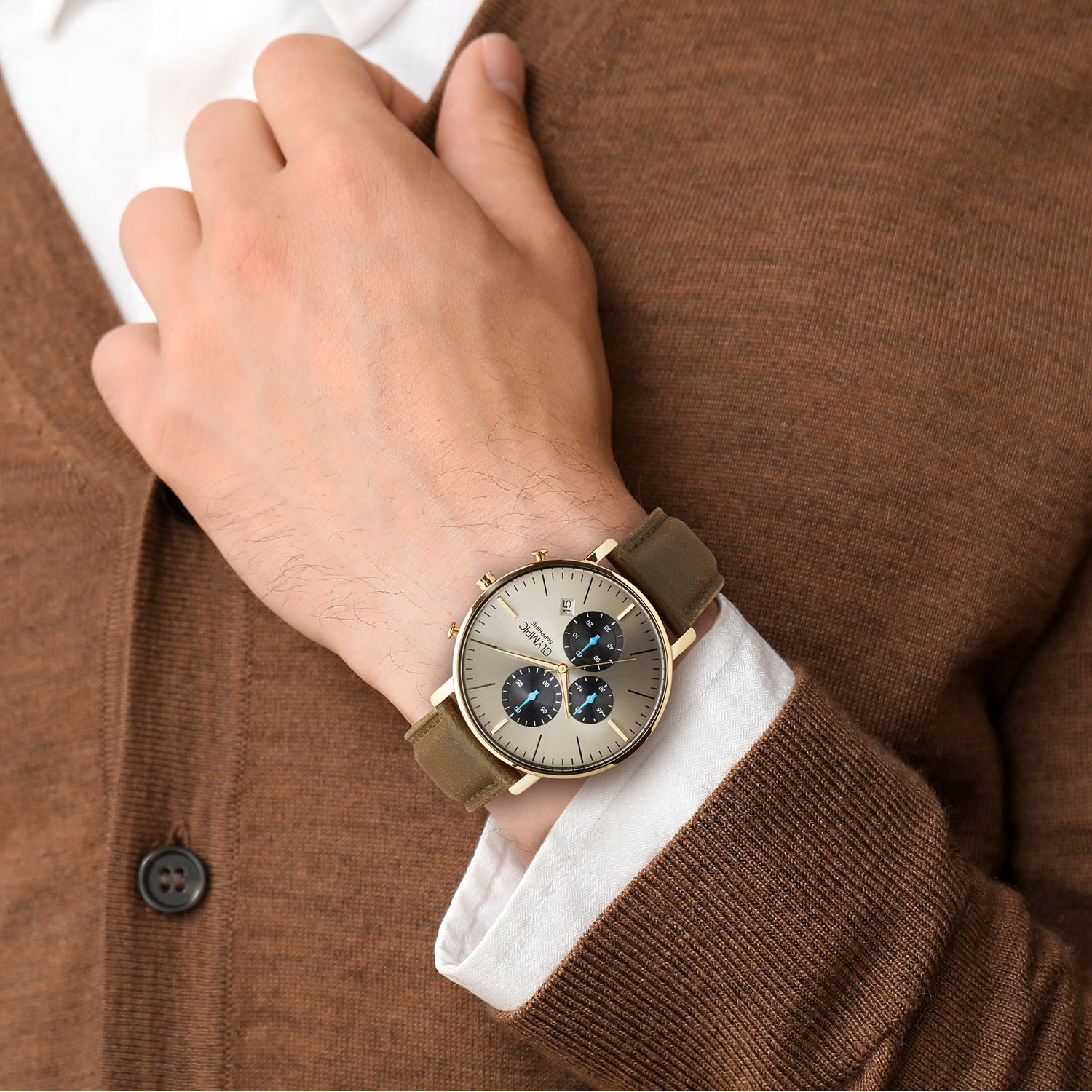 et Olympic horloge heeft een klassieke en verzorgde uitstraling met een moderne twist. De combinatie van een stijlvolle metalen kast en bijpassende band geeft het horloge een elegante look die zowel bij alledaagse kleding als bij meer formele outfits past.