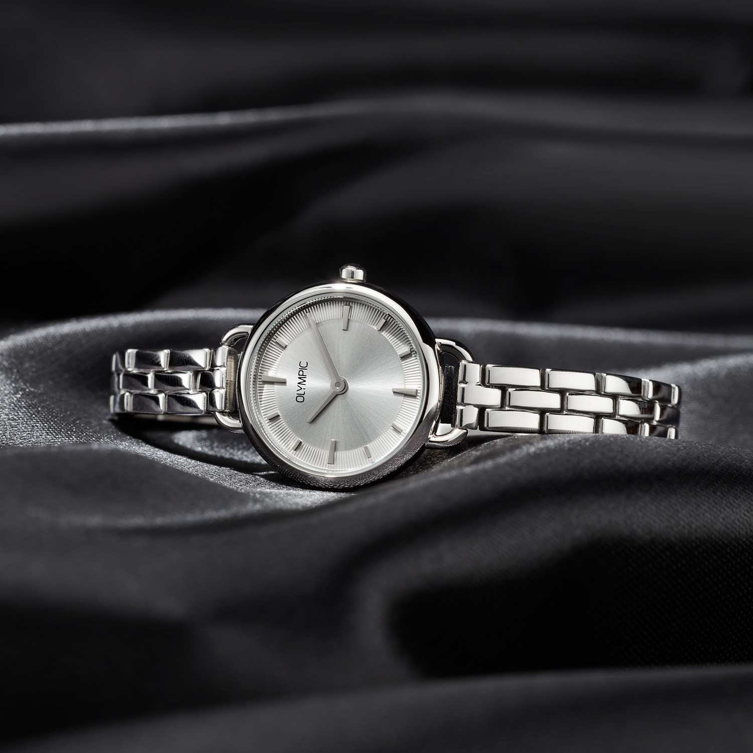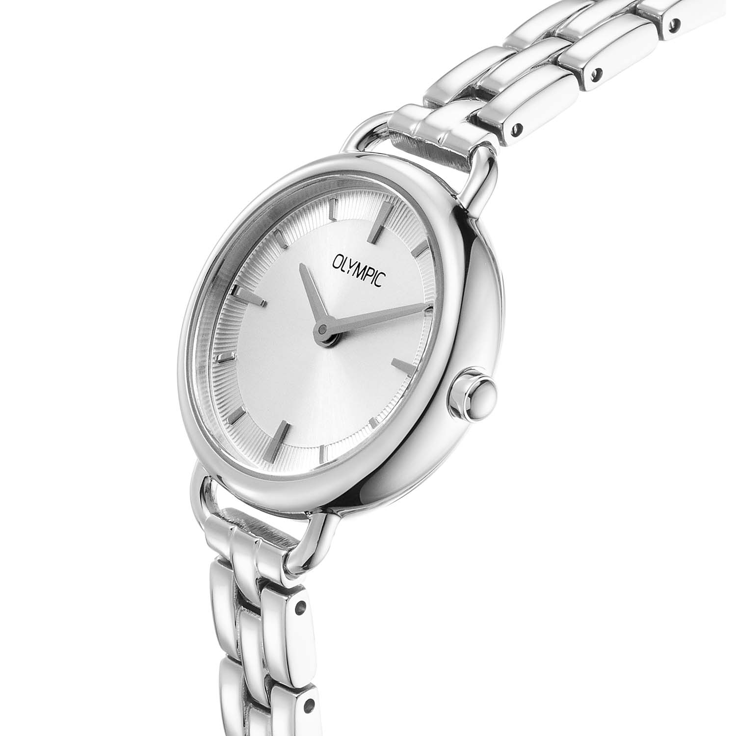 Het Olympic Tess Dames horloge van Olympic is een elegant en verfijnd dameshorloge met een klassieke, ronde uitstraling en een zilverkleurige metalen band. De subtiel gedetailleerde wijzerplaat maakt het tot een veelzijdig model dat bij zowel dagelijkse outfits als nettere gelegenheden past.