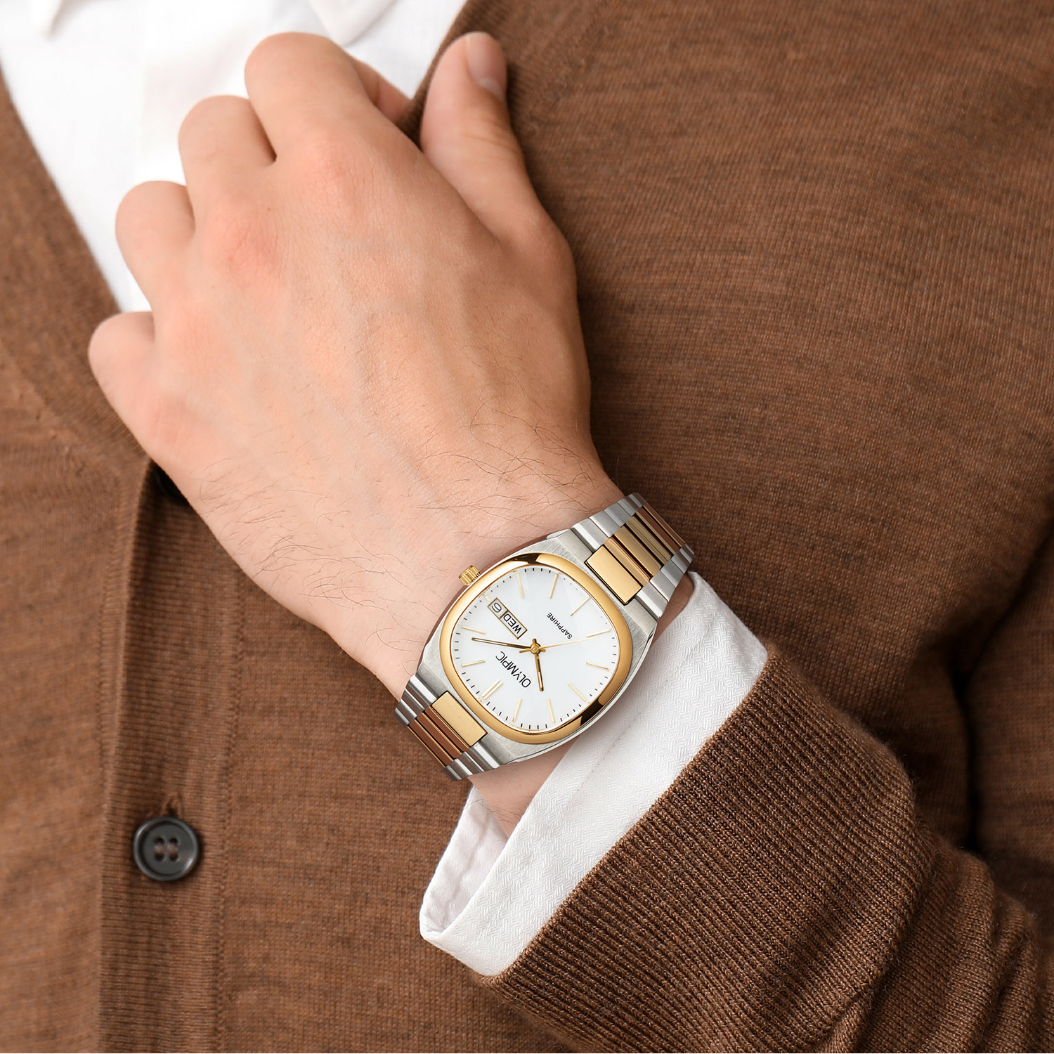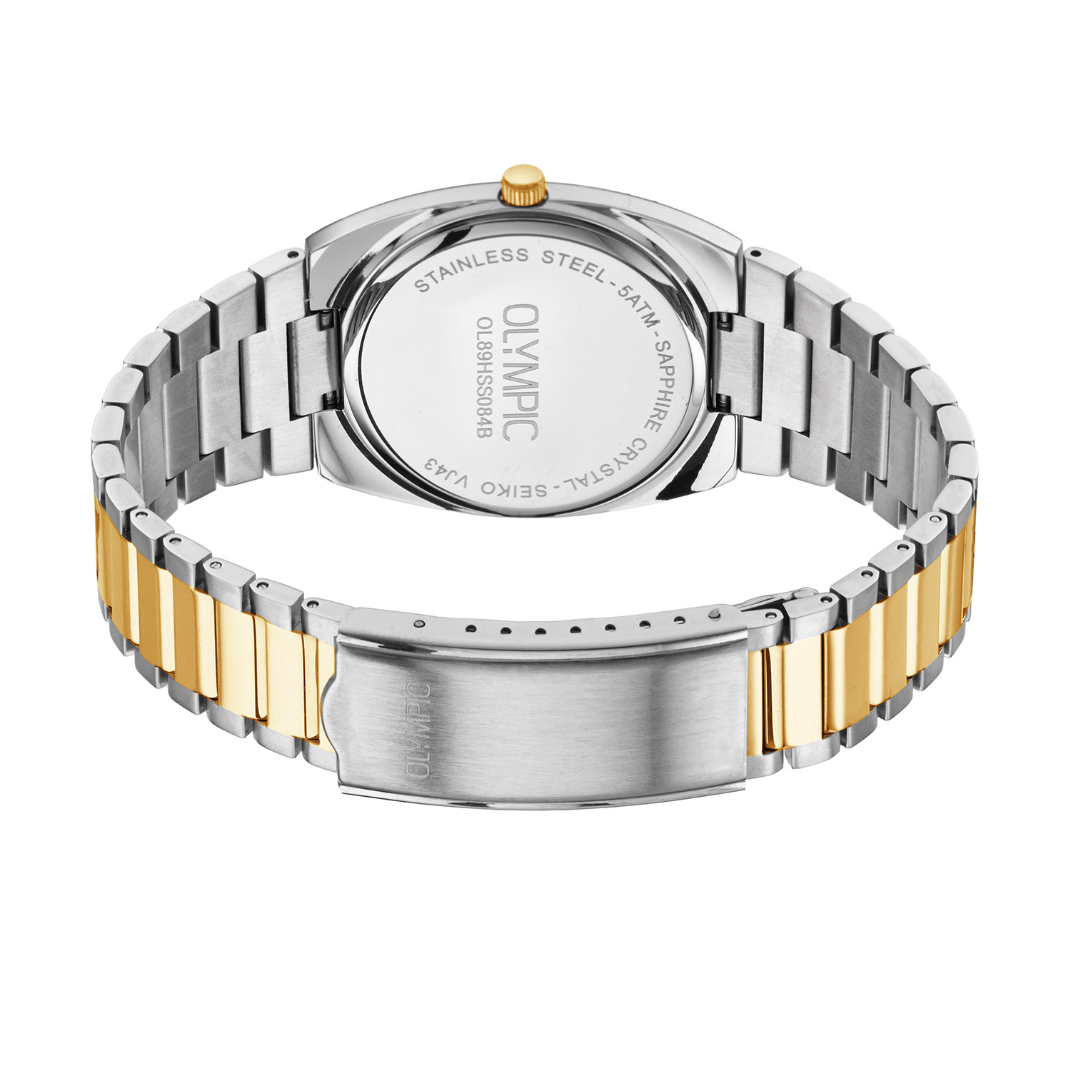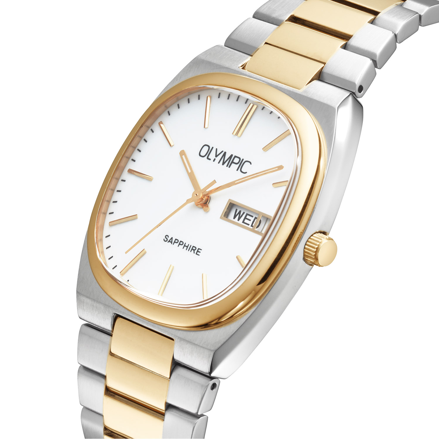 Dit Olympic herenhorloge, heeft een quartz uurwerk en analoge tijdsaanduiding. Het horloge beschikt over een datumaanduiding en is gemaakt van roestvrij staal met een zilverkleurige kast en band. De witte wijzerplaat is beschermd door saffierglas. Waterdichtheid tot 5 ATM. Perfect te dragen tijdens zowel formele als casual gelegenheden.