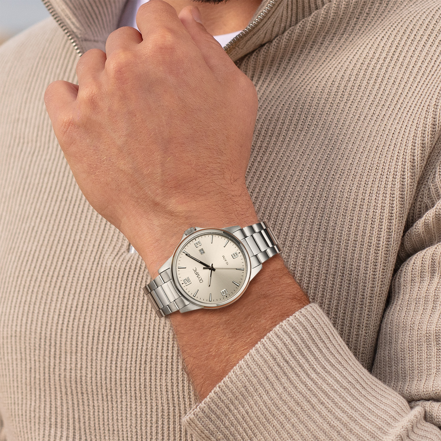 - Horlogeband gemaakt van staal, in de kleur zilver, met vlinder- of vouwsluiting