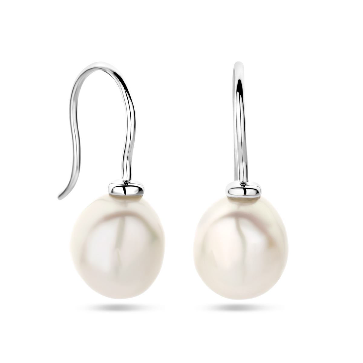 Gerhodineerd 925 zilveren oorhangers uitgevoerd met een zoetwaterparel. De oorhangers hebben een totale hoogte van 23.5cm. De parel heeft een afmeting van 12x8.5mm.