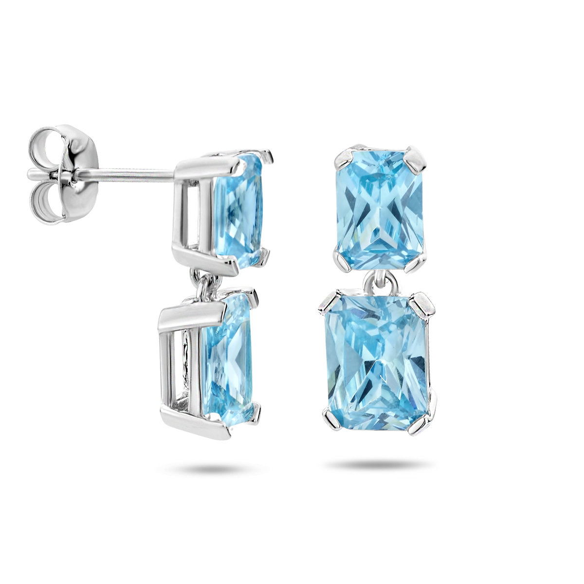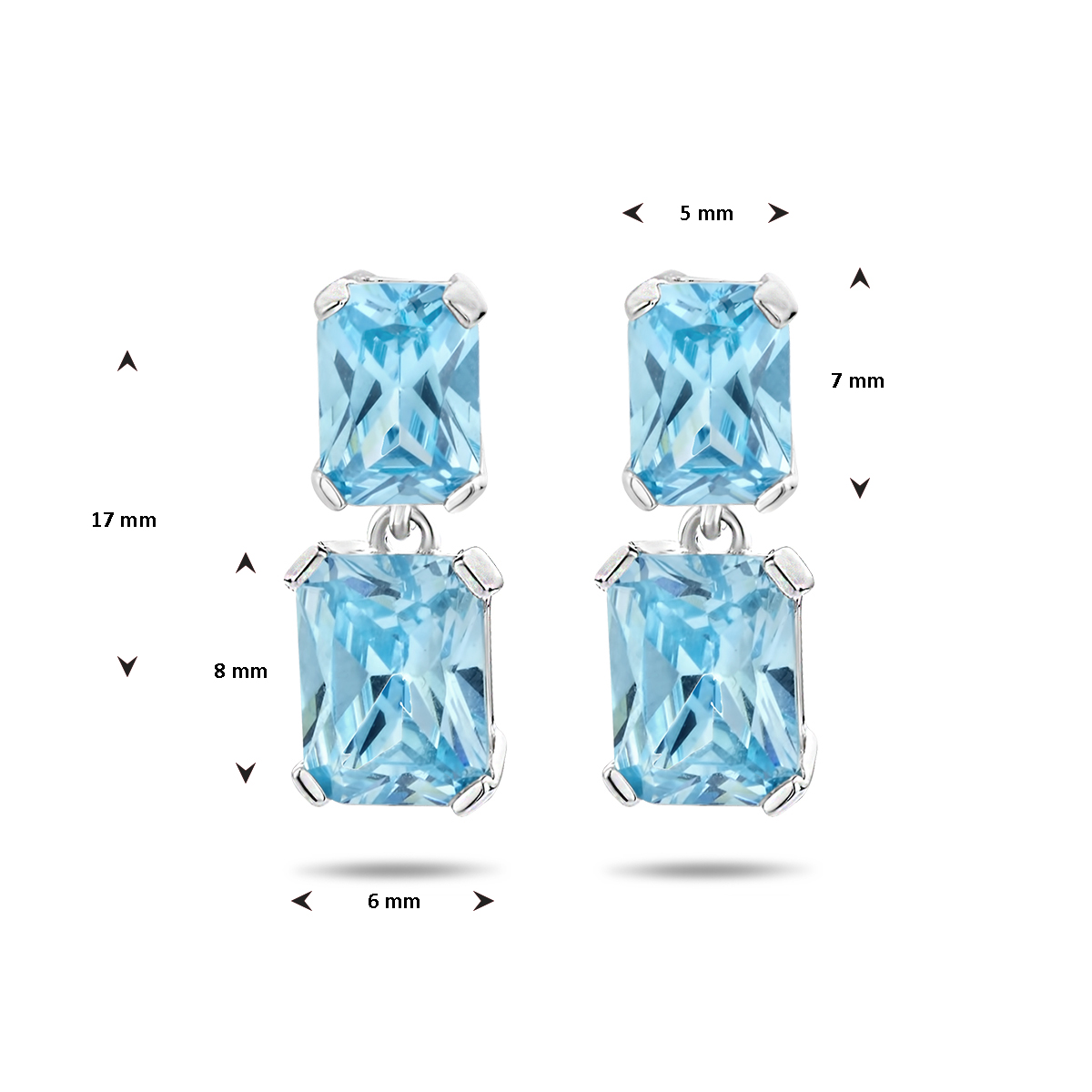 Gerhodineerd 925 zilveren oorhangers uitgevoerd met blauw zirkonia. De oorhangers hebben een totale hoogte van 17mm.