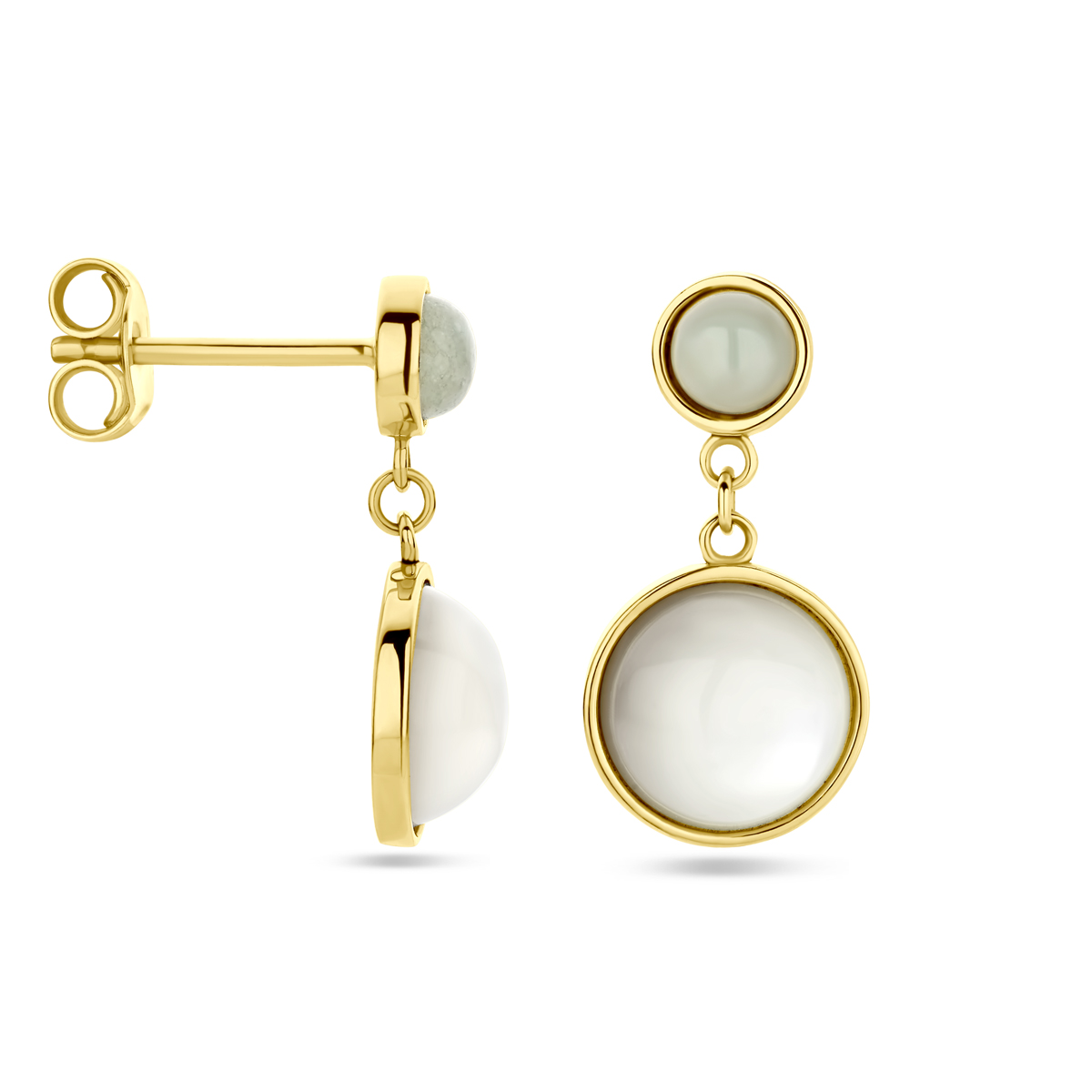Deze prachtige gouden oorhangers van ons huismerk zijn voorzien van groene agaat en parelmoer, waardoor ze een elegante en unieke uitstraling hebben. De oorhangers kunnen op verschillende manieren gedragen worden, bijvoorbeeld bij speciale gelegenheden of gewoon als subtiele toevoeging aan je dagelijkse outfit. Met deze oorhangers voeg je een vleugje luxe toe aan elke look!
