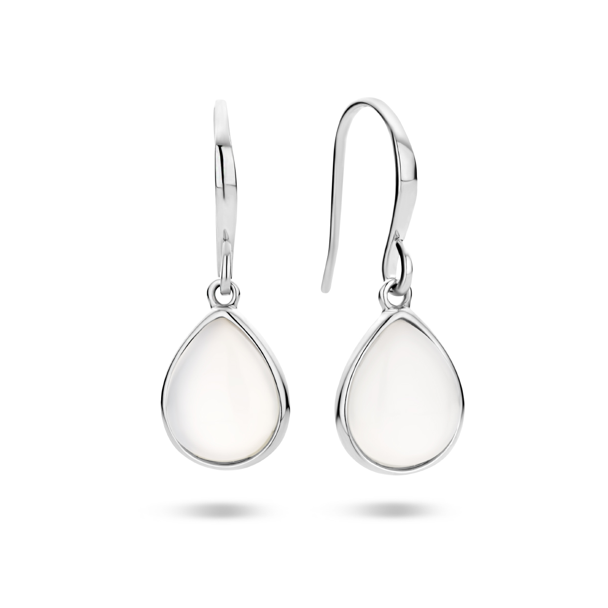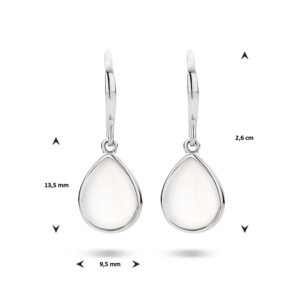 Gerhodineerd 925 zilveren oorhangers uitgevoerd met een schitterende maansteen. De oorhangers hebben een totale hoogte van 2.6cm.