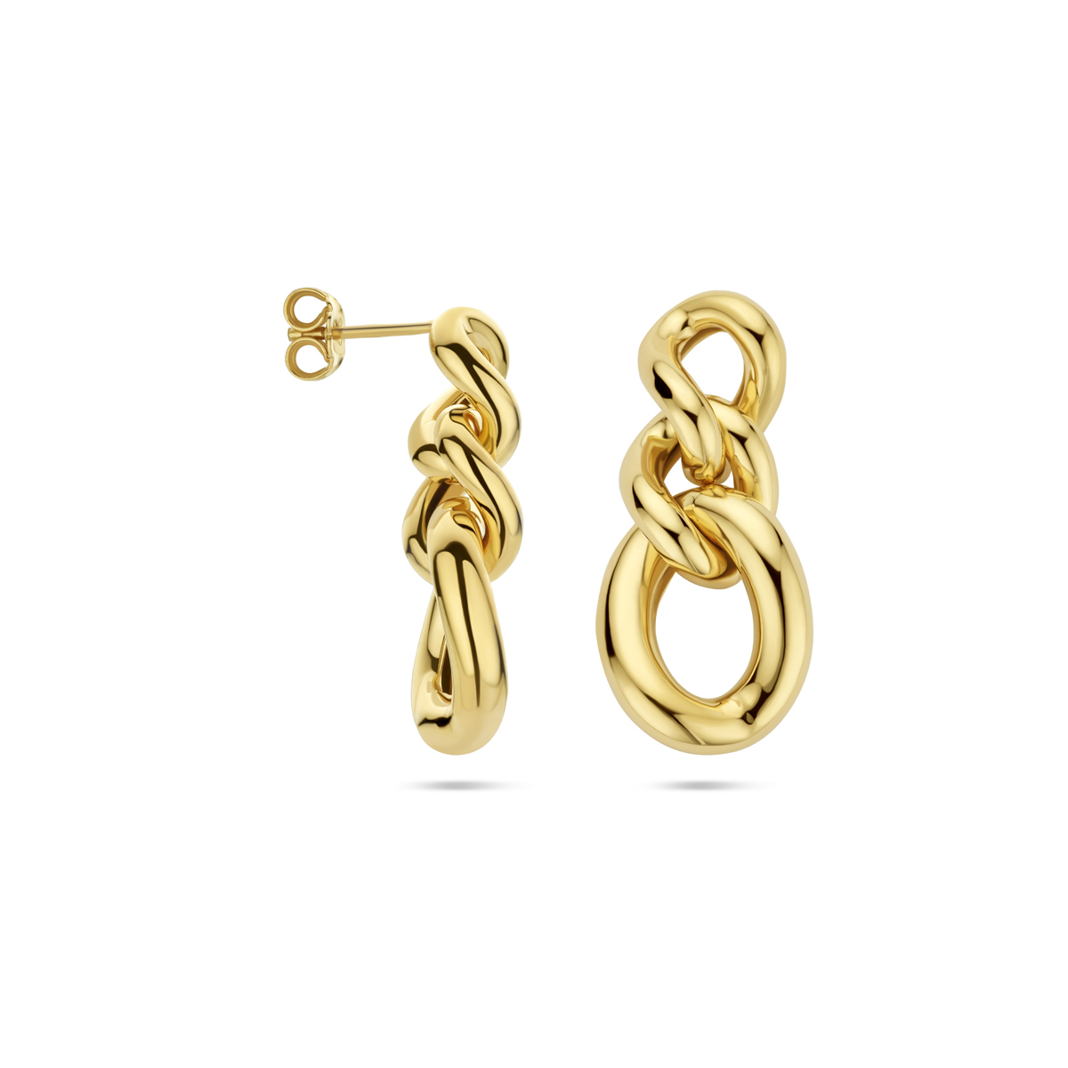Geelgoud op 925 zilveren oorhangers met een totale hoogte van 32mm. Geen garantie op plating.