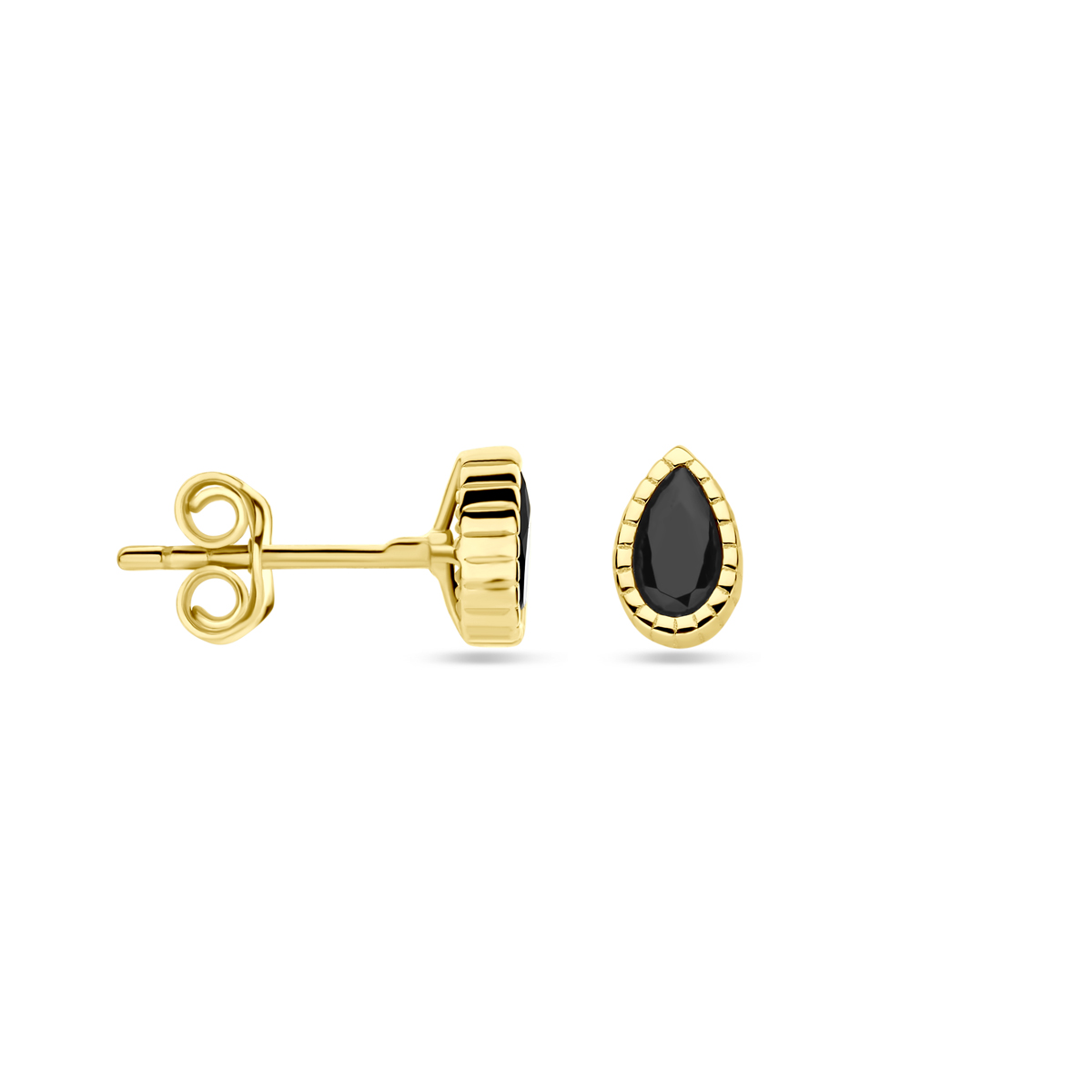 14k Geelgouden oorknoppen uitgevoerd met zwart zirkonia. De oorknoppen hebben een afmeting van 6x4mm.