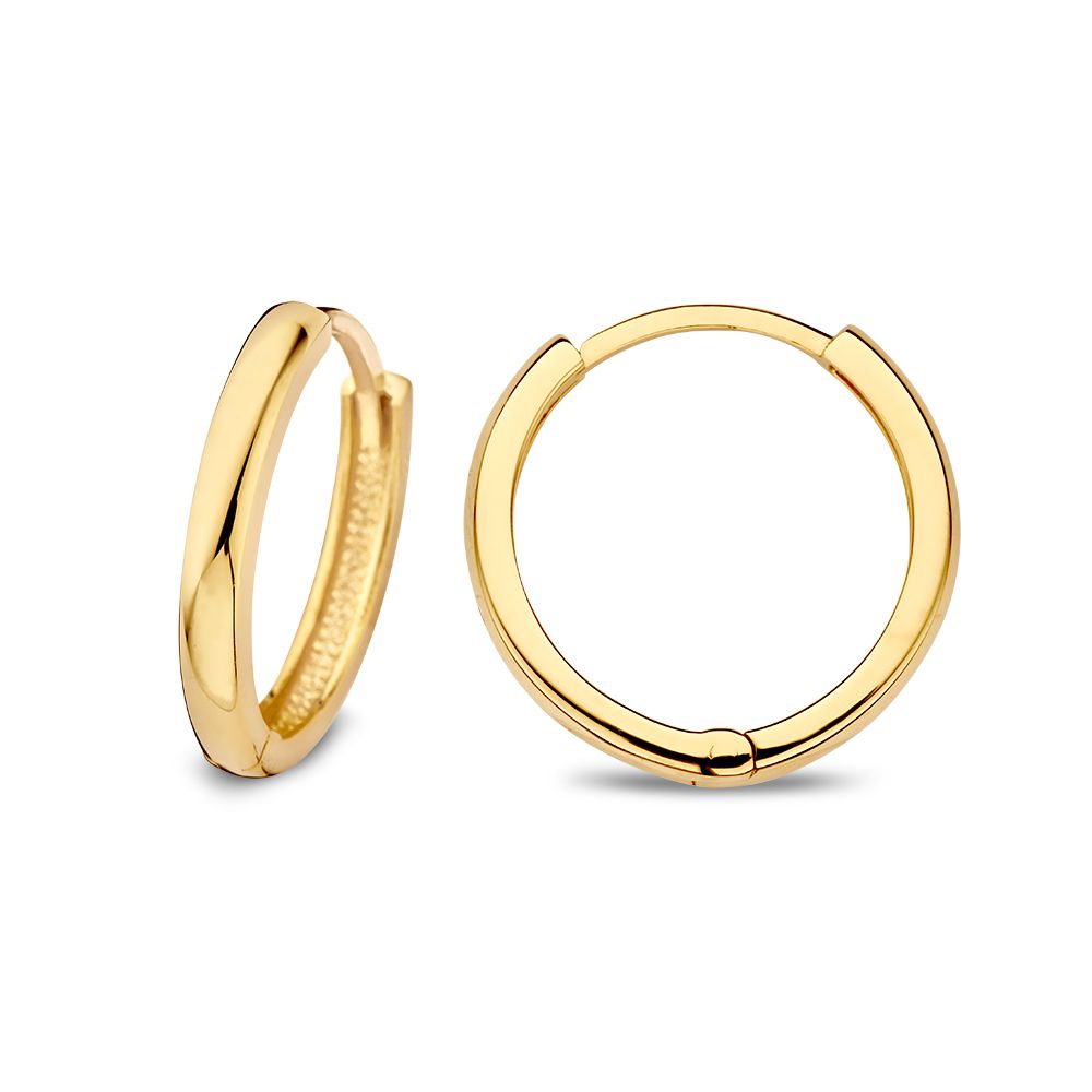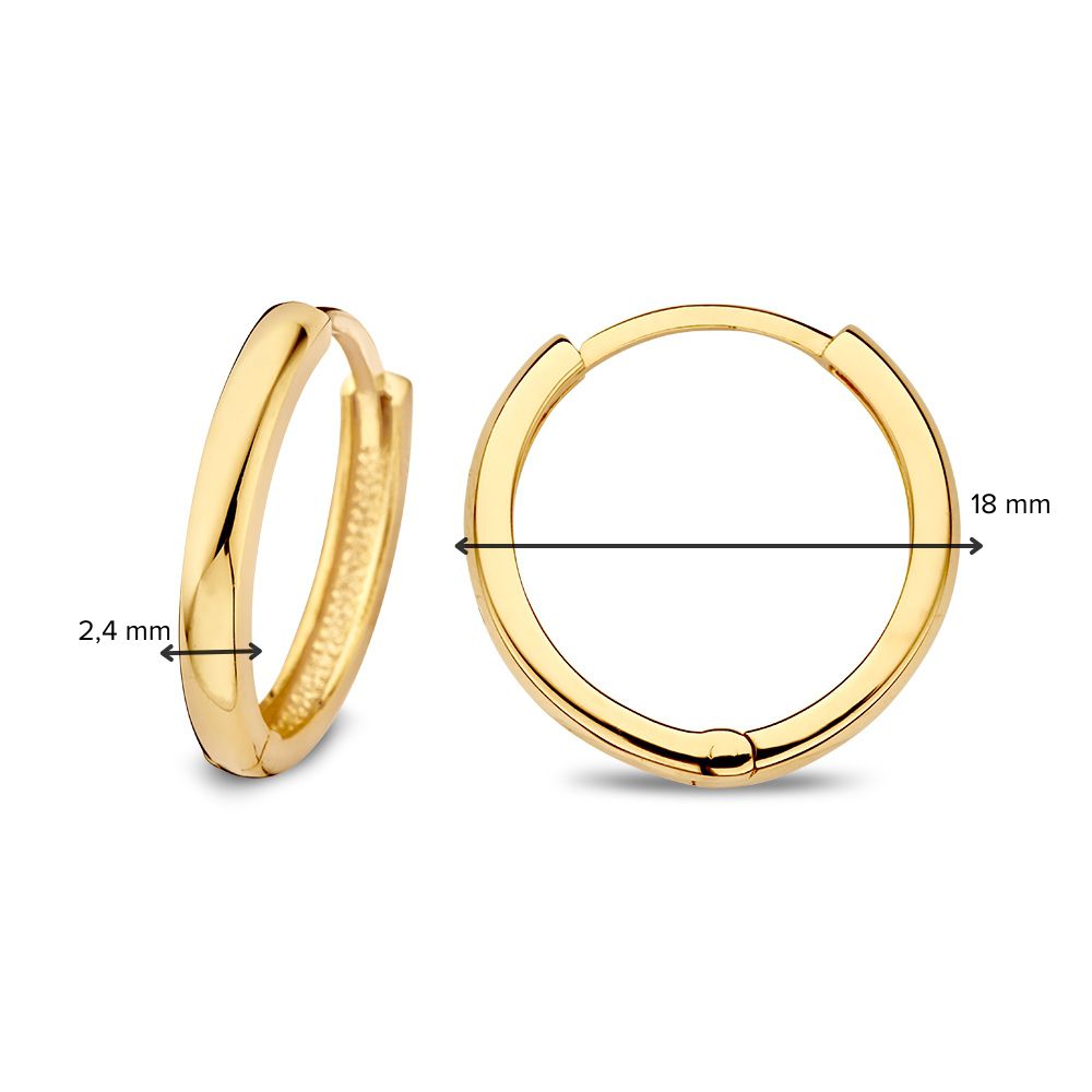 Deze bijzondere oorringen hebben een goudgehalte van 14 karaat, een breedte van 1,8mm en een diameter van 15 x 6 mm.