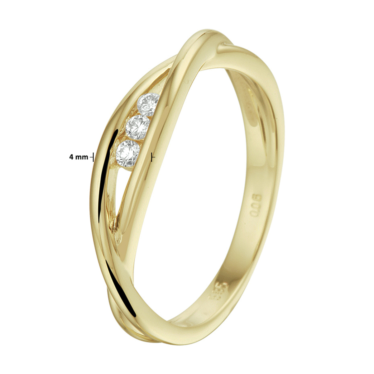 14k Geelgouden ring uitgevoerd met een schitterende diamant rij. De ring heeft een breedte van 4mm.