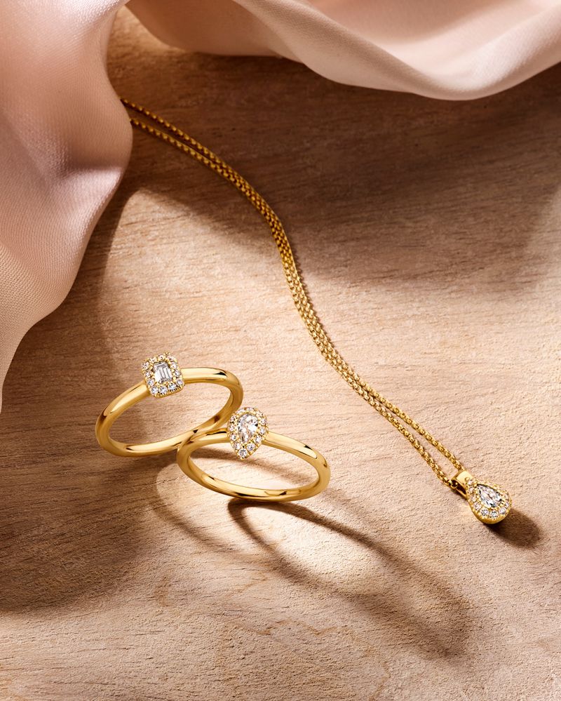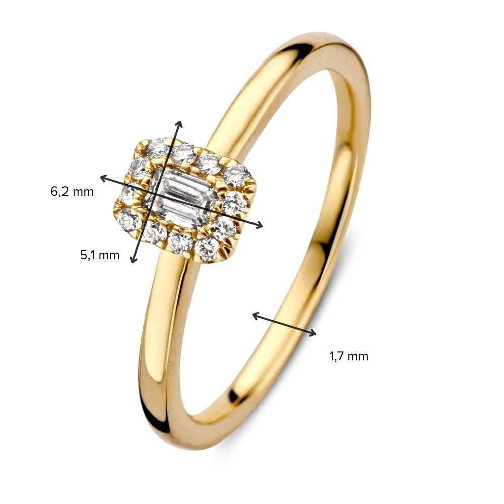 Stijlvolle geelgouden ring met een emerald diamant als middensteen.�De opvallende emerald diamant wort omringd door fijne briljanten.�