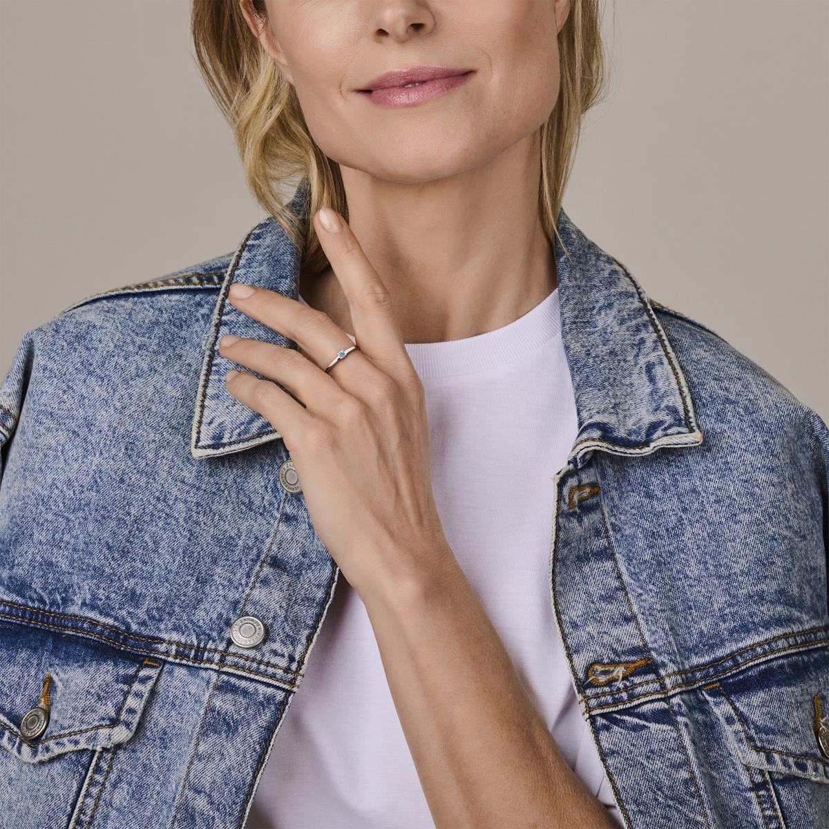Gerhodineerd 925 zilveren ring uitgevoerd met een schitterende blauw topaas. De ring heeft een breedte van 3mm.