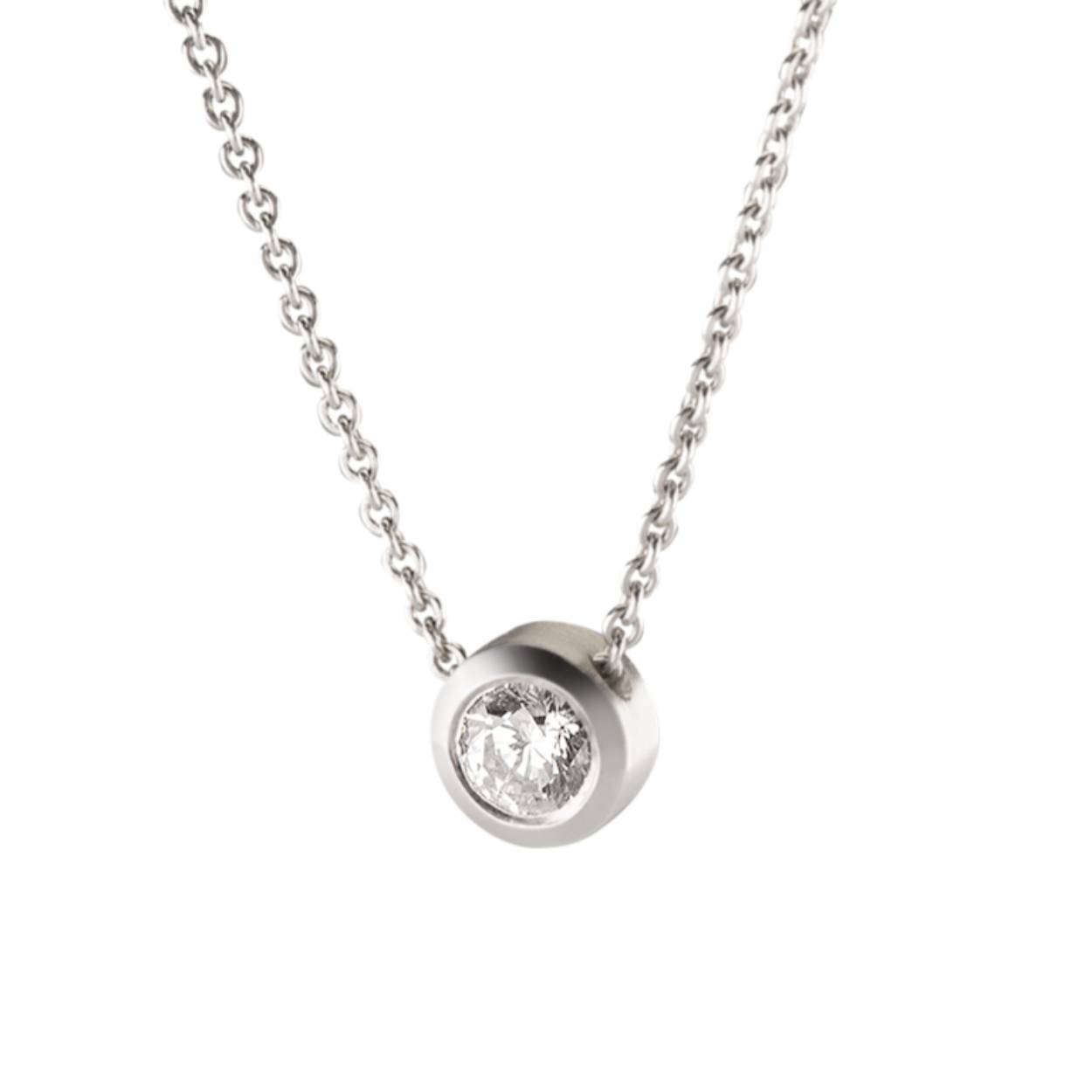 Solitair hangertje, inclusief collier. Dit prachtige, subtiele hangertje kan aan de achterkant gevuld worden met as, moedermelk of een kleine hoeveelheid haar. Het collier gaat door het hangertje heen, waardoor de zirkonia / diamant (afhankelijk van uw keuze) vrij kan bewegen.
