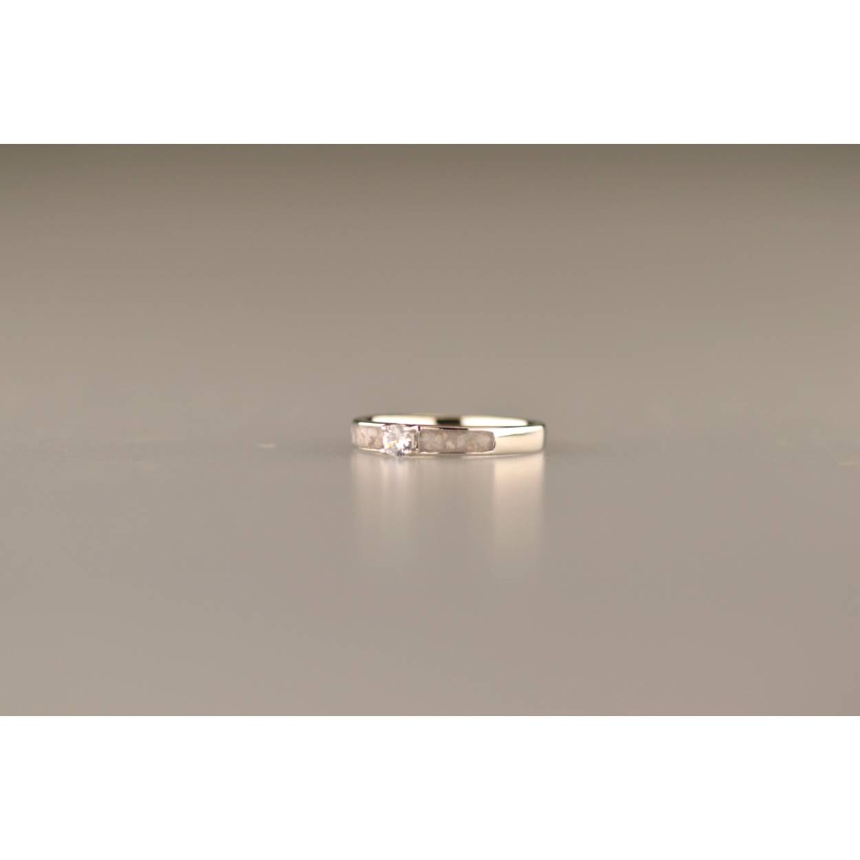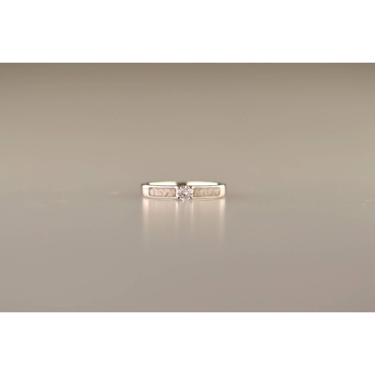 Deze zilveren ring kan gevuld worden met een mengsel van hars en as dat we in de kleur van uw wens maken. De ring is ook leverbaar in goud met briljant in plaats van zirkonia.