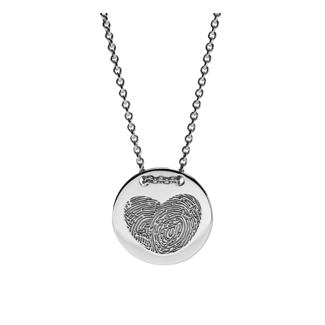 Graveer hanger inclusief collier. De hanger is geschikt voor meerdere soorten gravures. Denk bijvoorbeeld aan een vingerafdruk, 2 vingerafdrukken in hartvorm, logo, voetafdrukjes, handafdrukjes, pootafdruk, handtekening. De prijs van de hanger is exclusief de gravure.