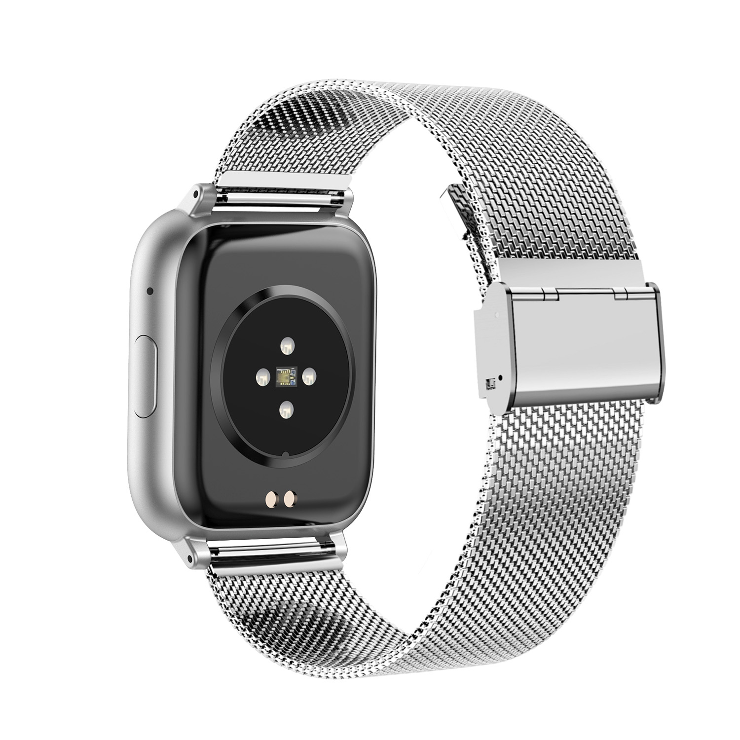 De Smarty 2.0 SW105F smartwatch heeft een rechthoekige aluminium kast in zilverkleur met een stijlvolle Milanese roestvrijstalen band van 22 mm breed. De horloge heeft geen datumfunctie, maar biedt een waterbestendigheid van niveau 5. Draag deze smartwatch comfortabel en stijlvol om je pols voor een moderne look en geavanceerde functionaliteit.