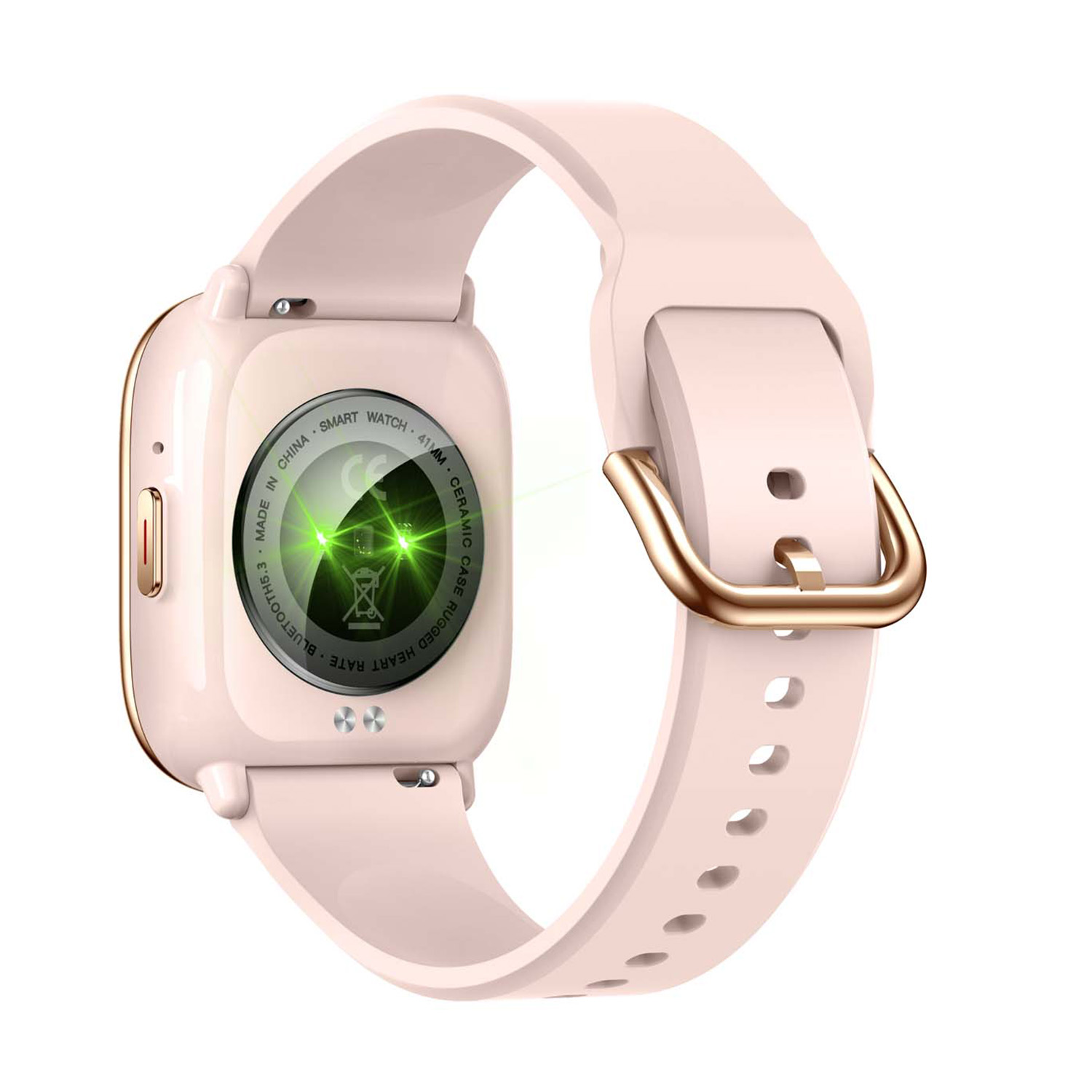 De Smarty2.0 Smartwatch, model SW081C, biedt een stijlvol rechthoekig ontwerp, een metalen kast in roségoudkleur, en een comfortabele plastic siliconen band in roze. Met een kastgrootte van 40 mm en een waterbestendigheid van niveau 3, is hij perfect voor dagelijks gebruik. Draag hem om uw pols voor een eigentijdse look. Ideaal voor dagelijks gebruik. Nieuw product.