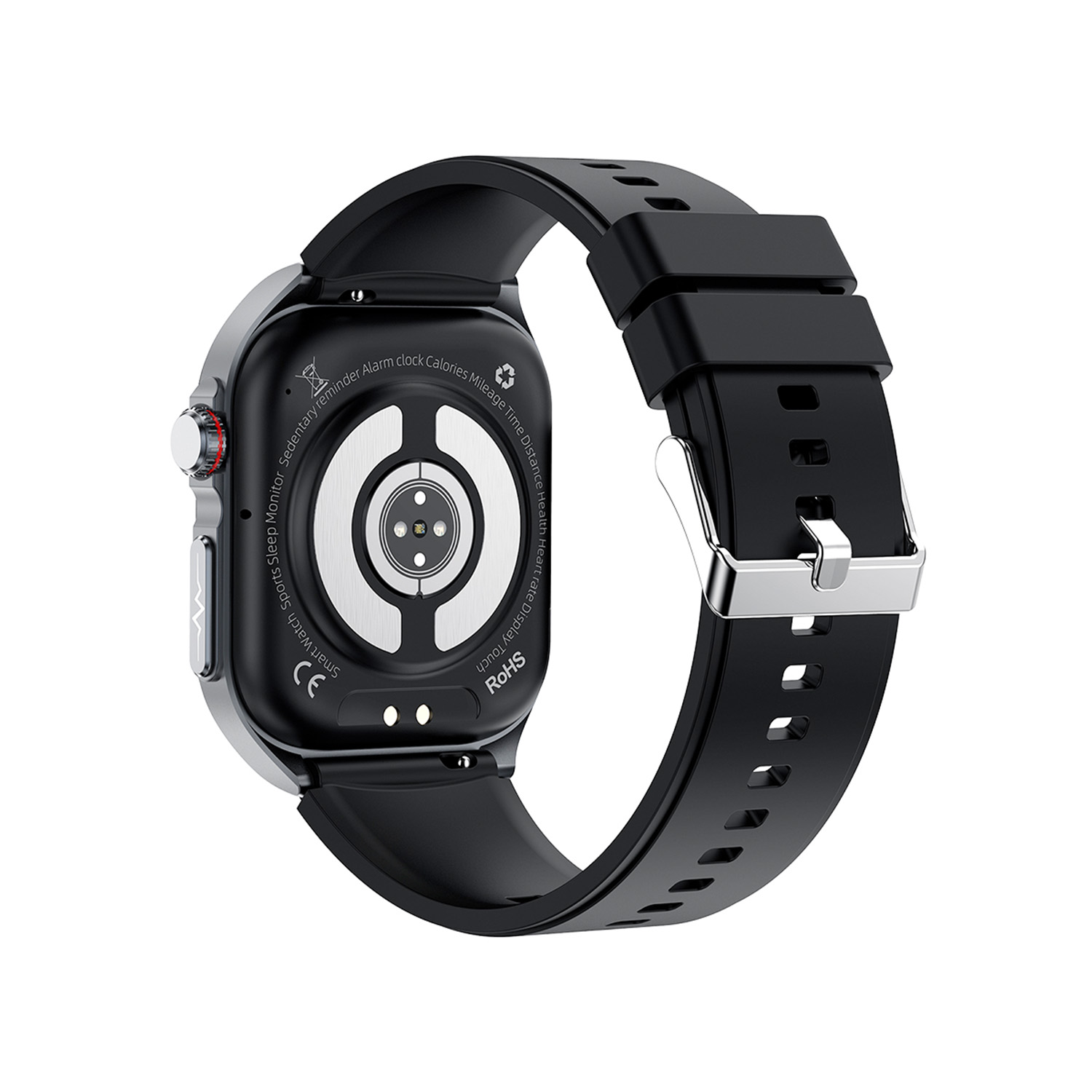 Dit Smarty Smartwatch horloge met nr: SW082A is een stap in de toekomst. Door zijn Amoled scherm is het beeld vele malen scherper en intenser. De gunmetal kast is gemaakt van aluminium met een gehard glas. Aan de kast zit een zwarte siliconen band met een gespsluiting. Het rechthoekige horloge heeft een afmeting van 46,5x40,5x11mm en is spatwaterdicht. Deze smartwatch is sportief, stijlvol, maar zeker gebruiksvriendelijk. Om door apps, berichten en tekst te bladeren hoeft je alleen maar op het glas te tikken of de knop te gebruiken. Tevens heeft het een Find my watch functie.