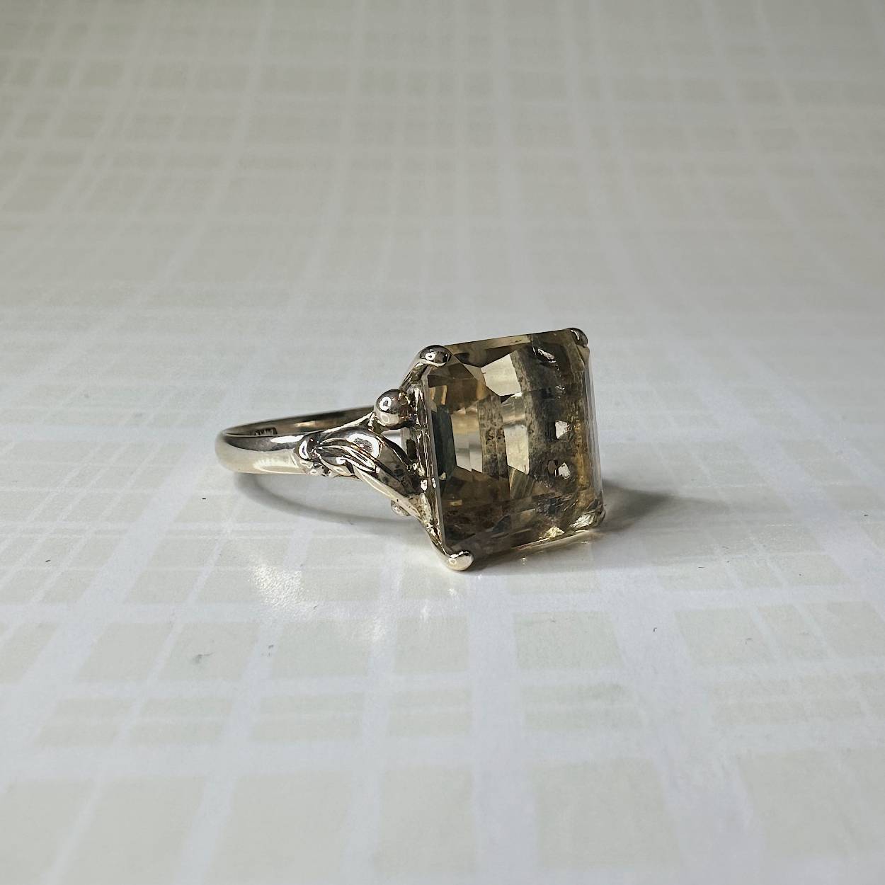 Prachtige 14 karaat gouden vintagering met een vierkant geslepen citrien. De ringmaat is op 18 beschikbaar.