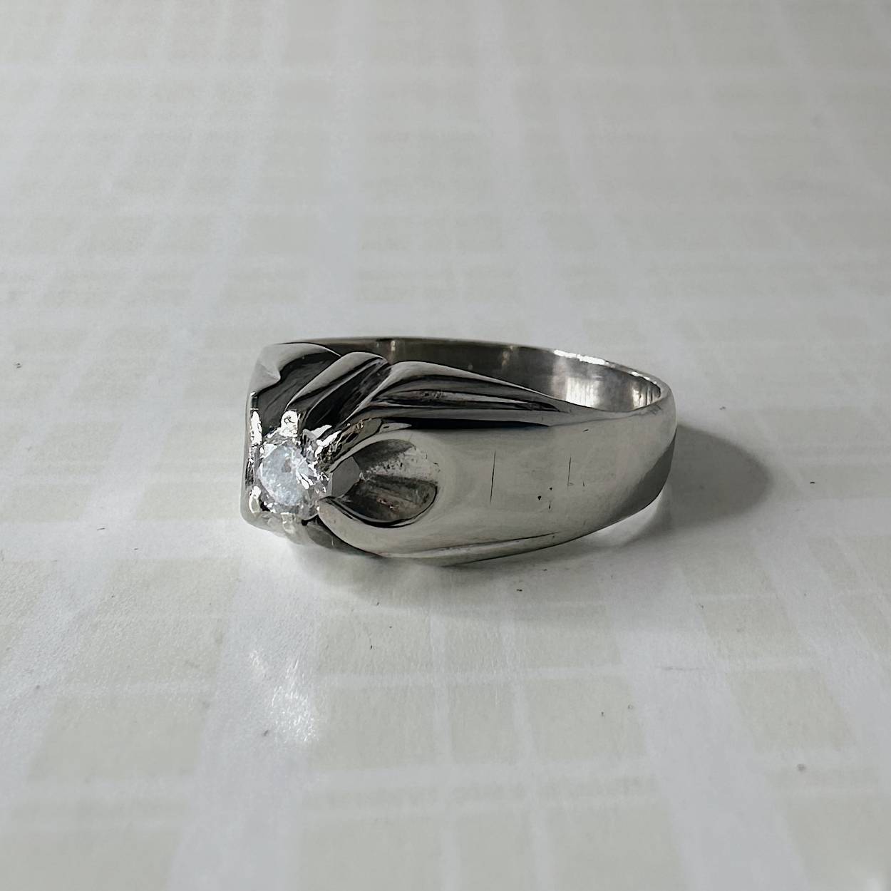 Deze prachtige witgouden ring met een legering van 18 karaat heeft één briljant geslepen diamant met een gewicht van 0.15ct. De scheen is 3,7 mm breed en de kop van de ring is 7,6mm.