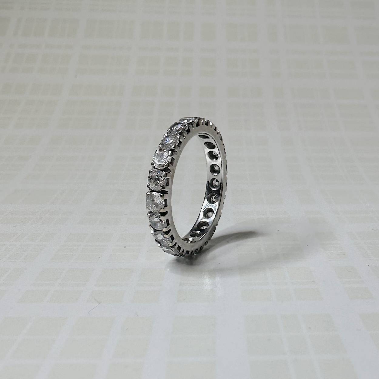 Deze prachtige vintage witgouden ring is rondom uitgevoerd met zirkonia. Dit type ring heet ook wel een ''Eternity Ring''